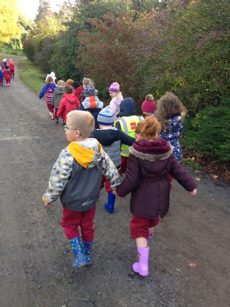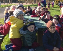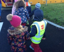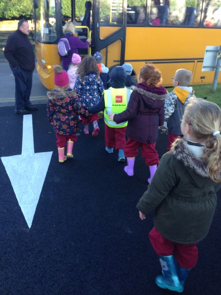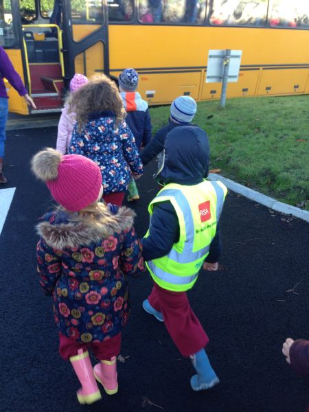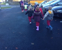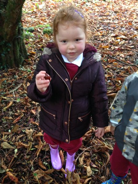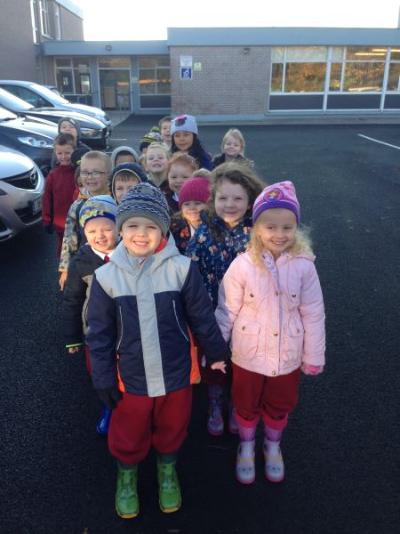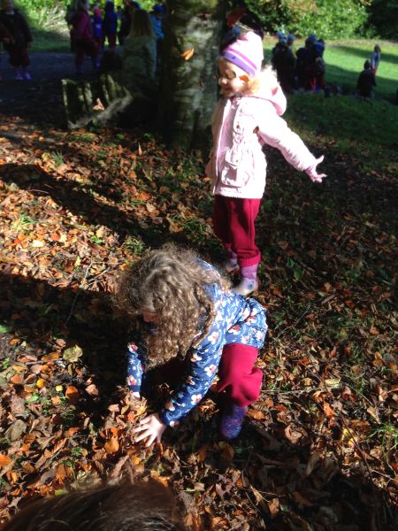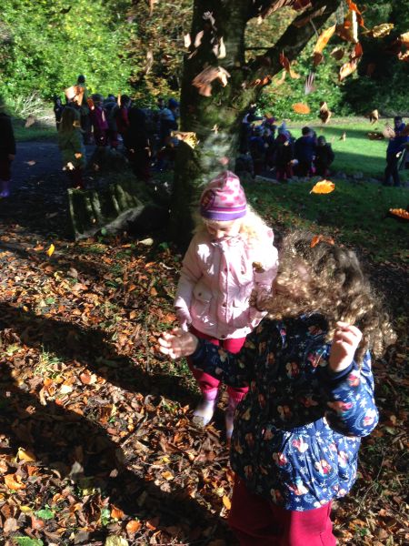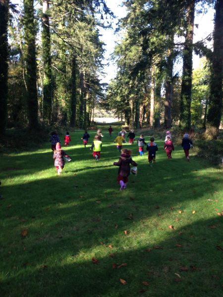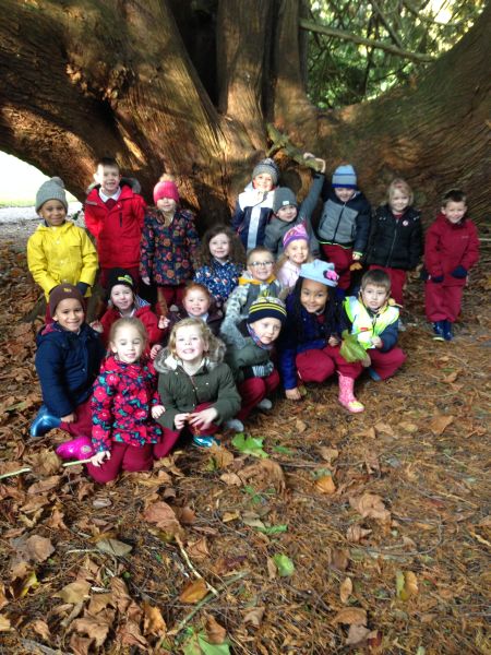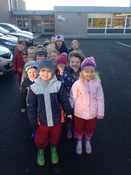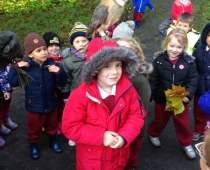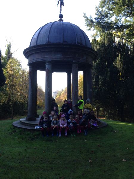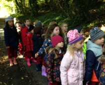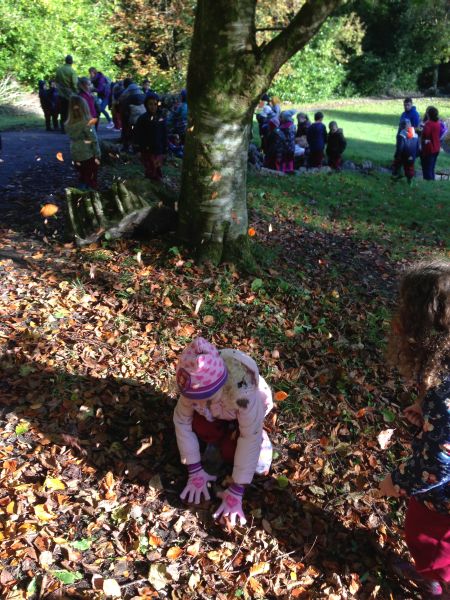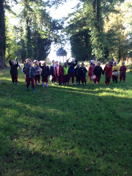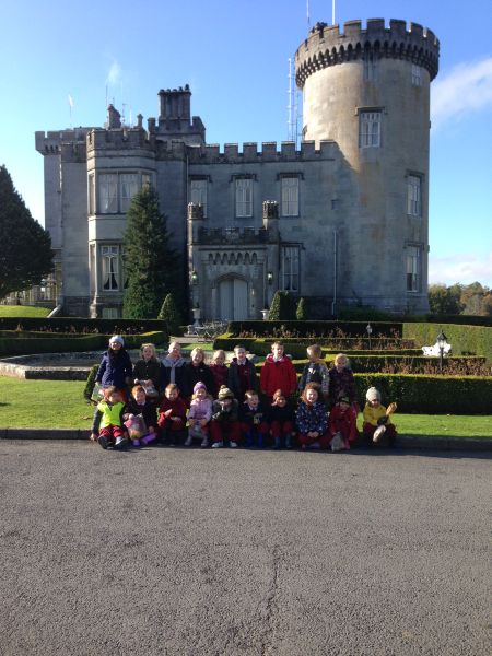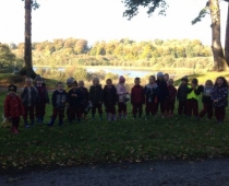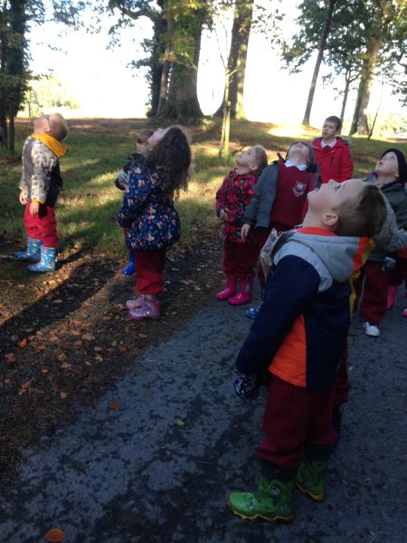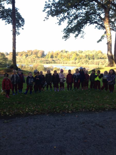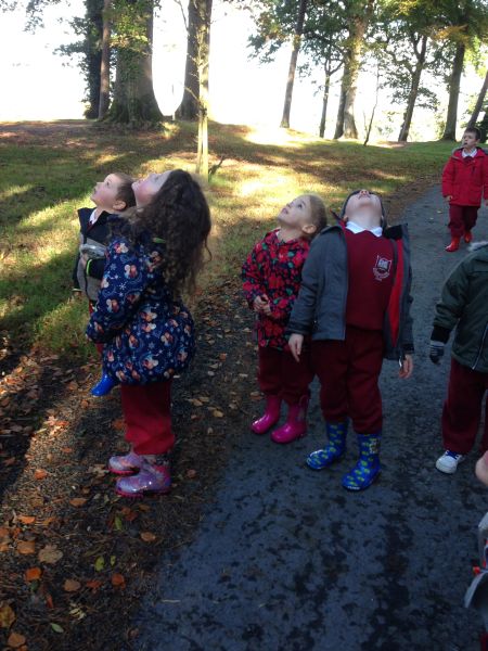 Our three Junior Infant classes undertook a field trip to Dromoland on October 24th to learn all about nature, colour, shape and the world around us. Bhailigh na páistí duilleoga deasa sa choill. You can see pictures of their trip in this gallery.