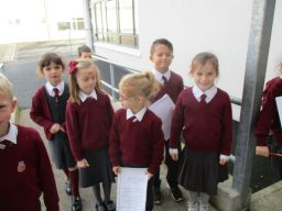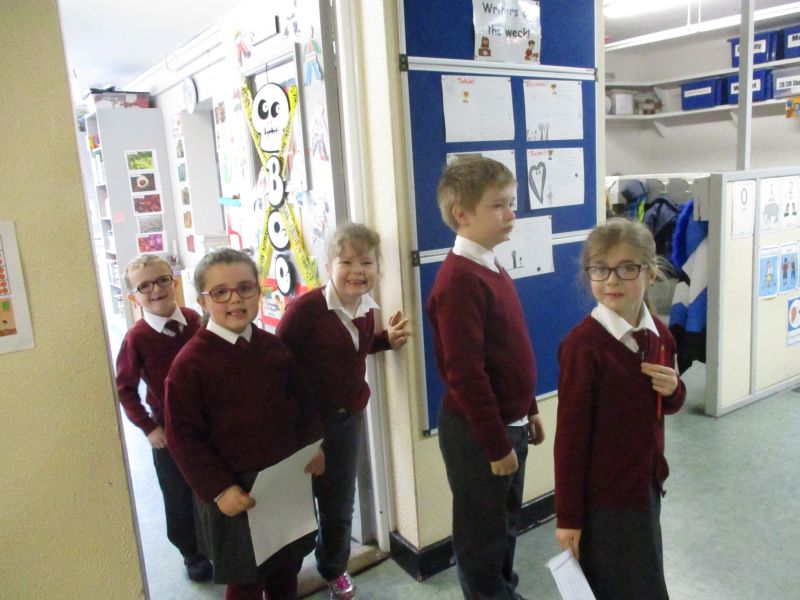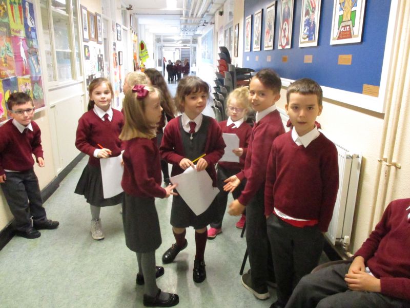 Ms. Moore’s first class followed a maths trail through the school this week. Here are some photographs of them in action.