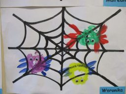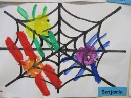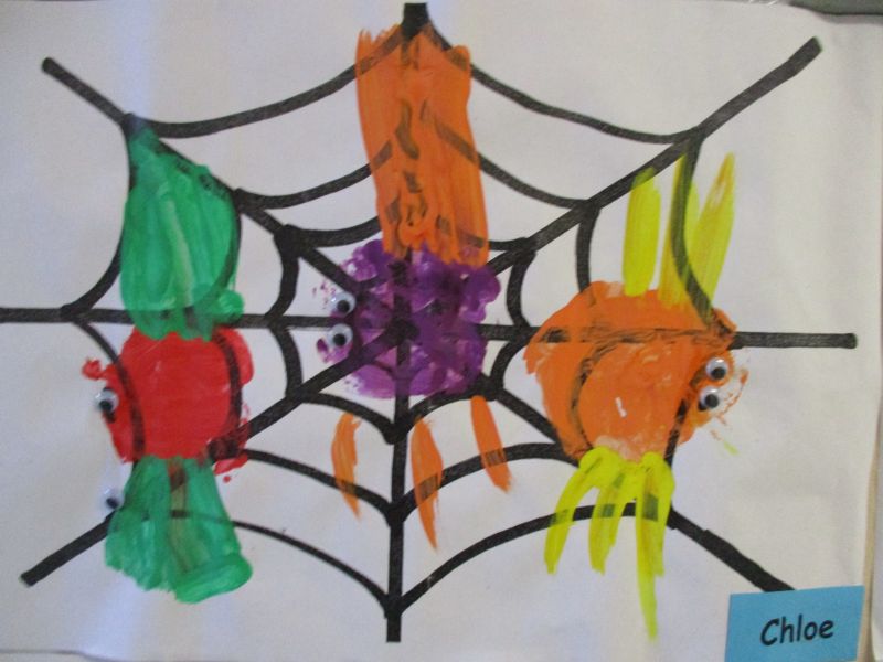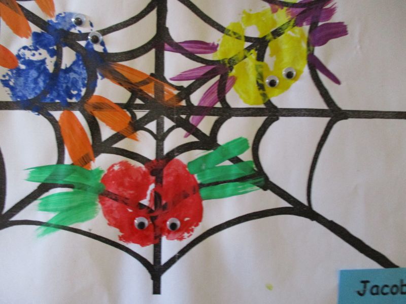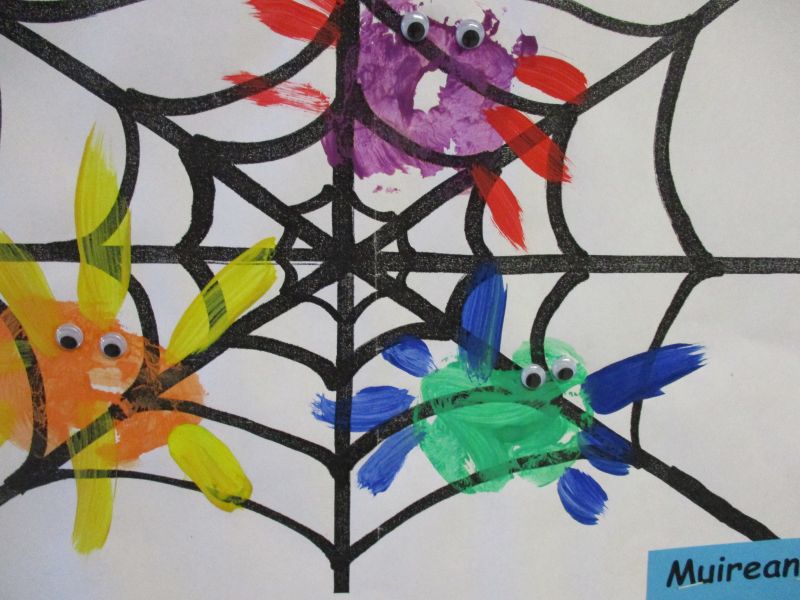 Ms. NÕ Mhuiris’s Junior Infants learned how to make spider web prints using apples. You can see lots of lovely webs in this gallery.