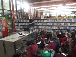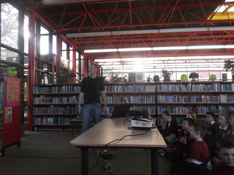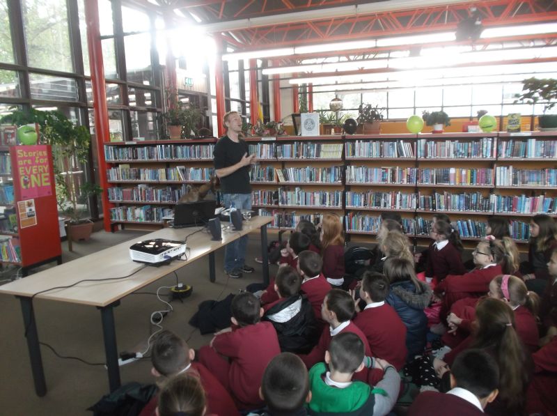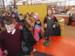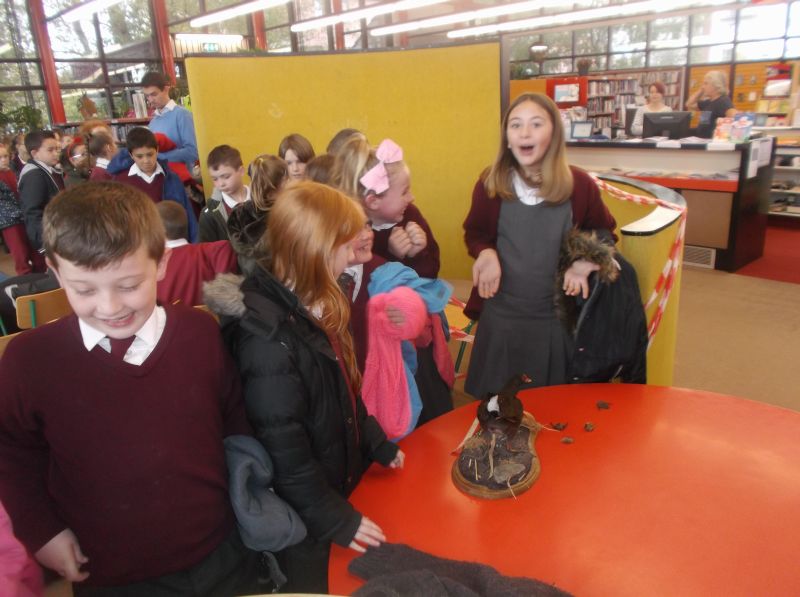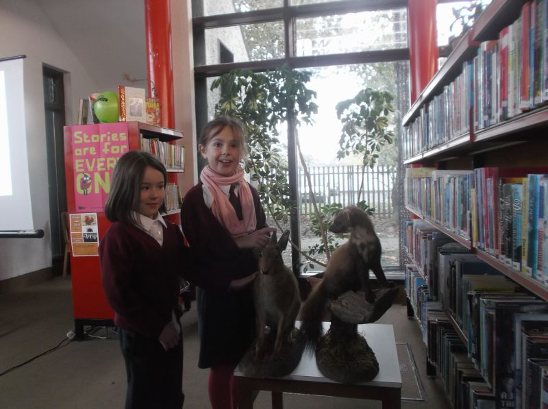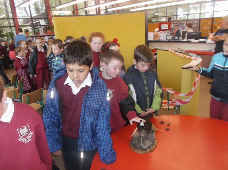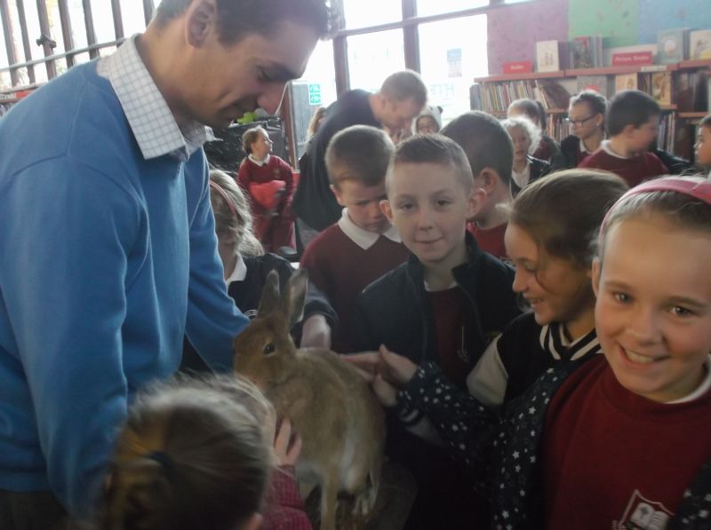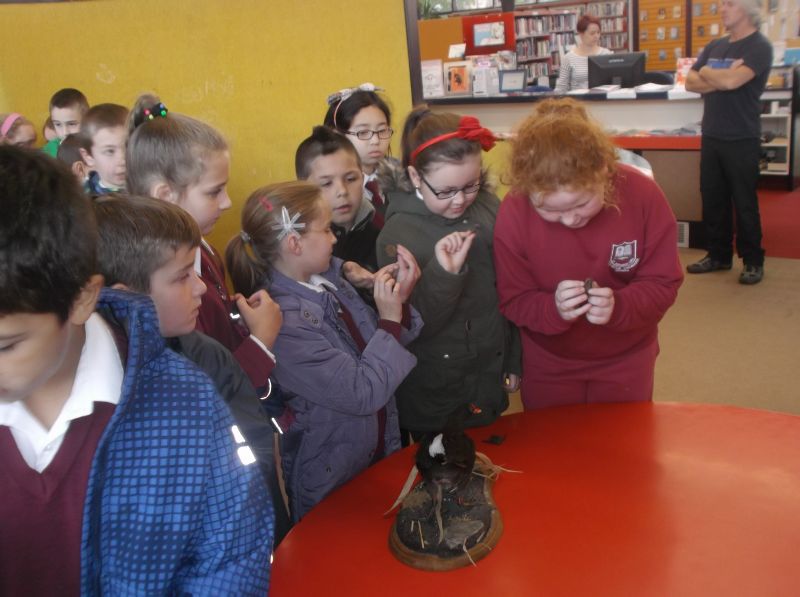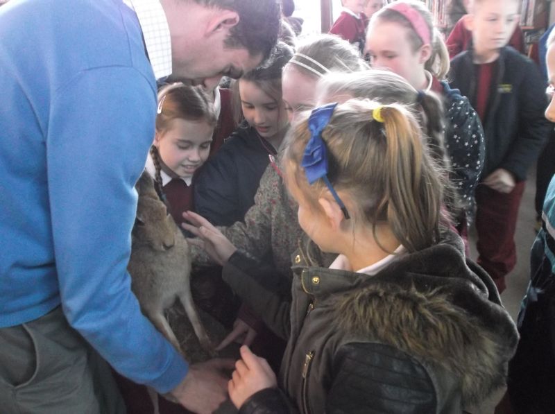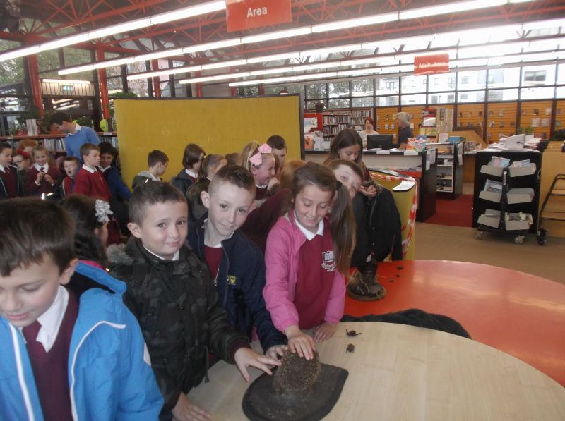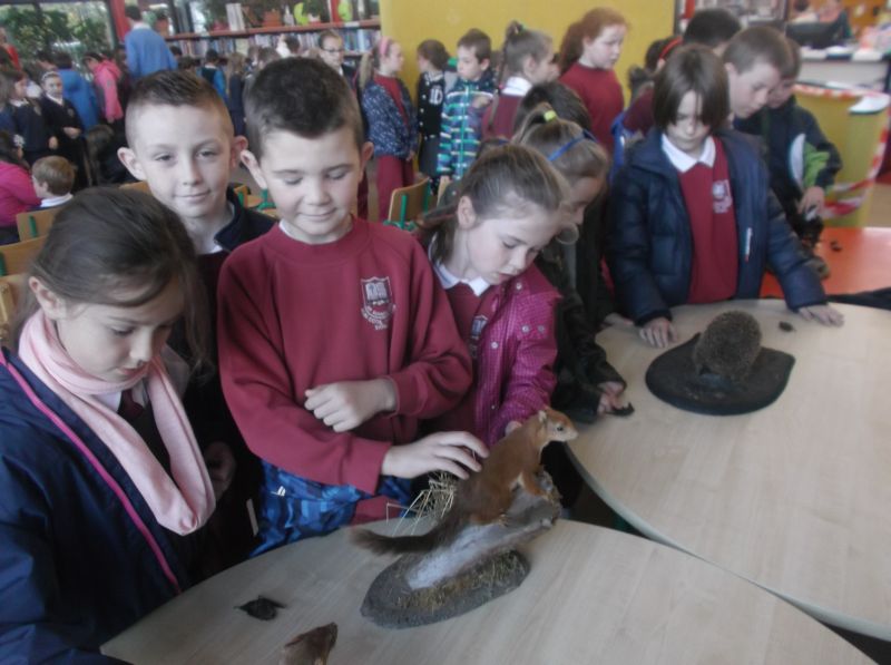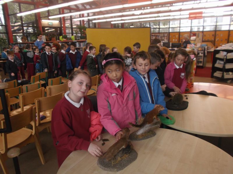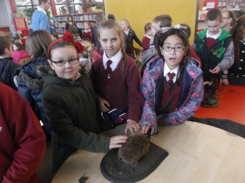 Mr. Pilkington and Mr. Glynn brought their 3rd classes to Seàn Lemasss Library on October 23, 2104 to hear a wildlife ranger talk about the wonderful animal life around Shannon. It was a thoroughly interactive session and the pupils got to see and touch various creatures. The animals and birds the pupils learned about included hares, bats, stoats, pine martens, squirrels, hedgehogs and water hens.