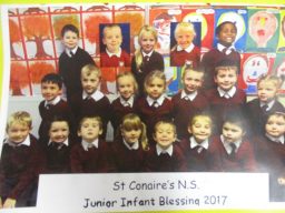 Ms. McMahon’s Juniors painted portraits of themselves for their first painting experience in St. Conaire’s. Their work was put on display in the Infant corridor. We hope you enjoy them.