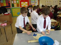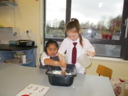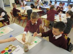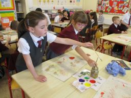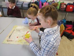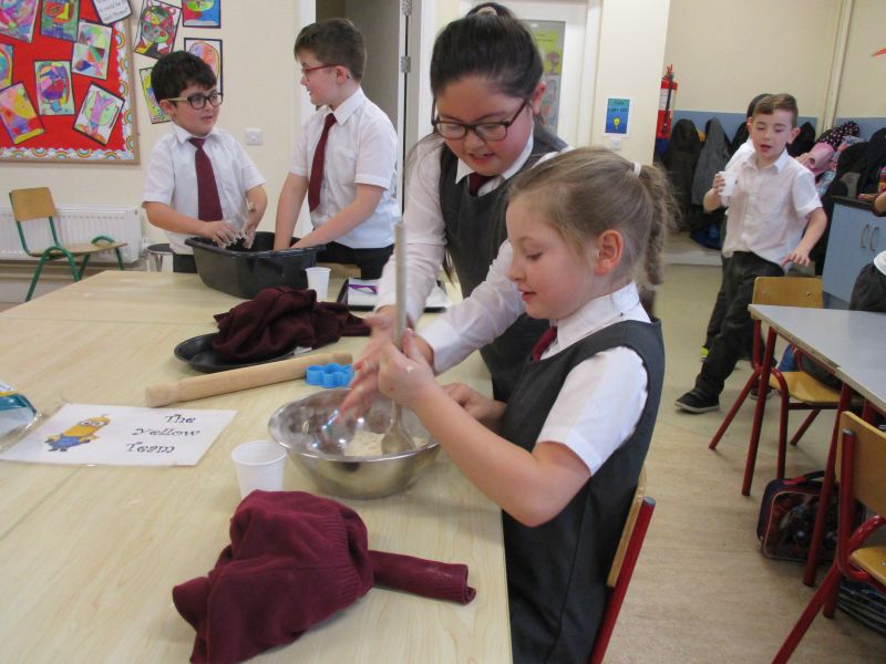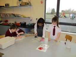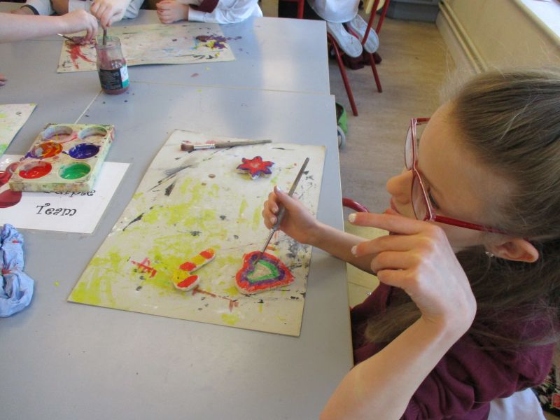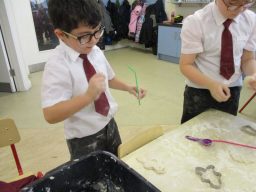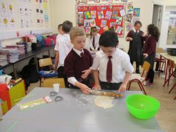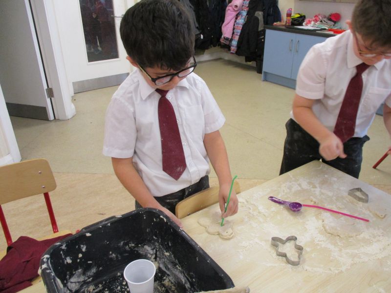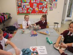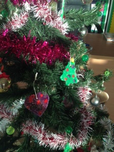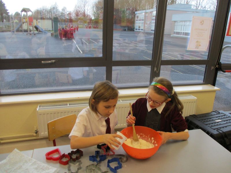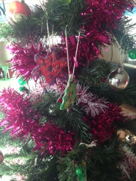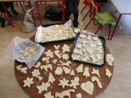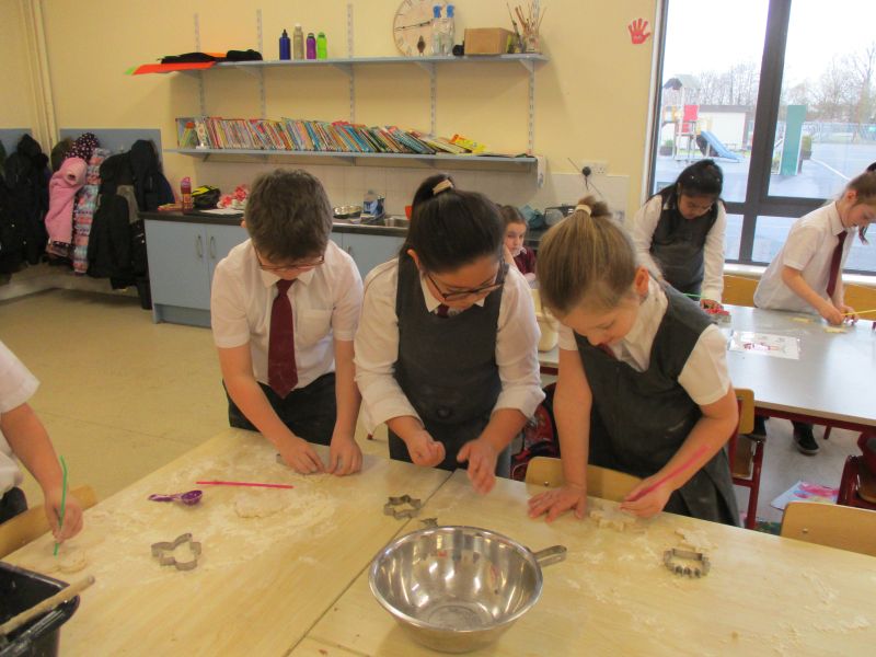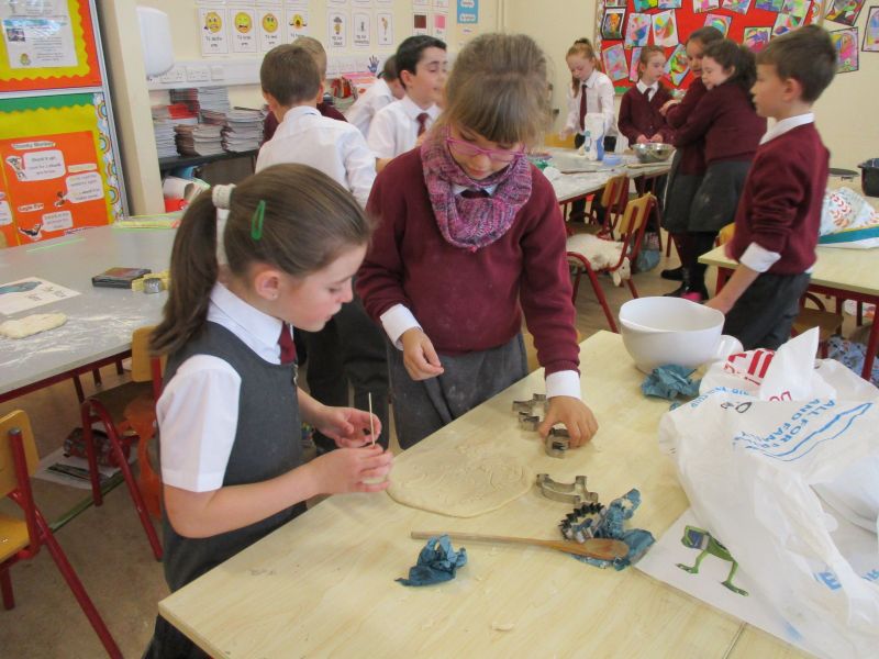 This week Ms. Coyne’s second class have been busy baking and decorating salt dough ornaments for our Christmas tree. Everyone worked really hard and put a lot of effort into their creations. These ornaments are really easy to recreate at home. All you have to do is mix one cup of flour, one cup of salt and a half a cup of water in a large bowl to make the dough. Roll it out and use cookie cutters to shape your ornaments. Put them in the oven for a couple of hours at 100 degrees and then you are ready to decorate them any way you like. We used festive colours and then sprayed them with some glitter. Well done to all the students who worked so hard, your ornaments turned out beautiful and would brighten up any room.