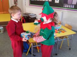 Ms. O’Driscoll’s Junior Infants were transformed into elves to lend a hand in Santa’s Workshop as part of our implementation of the Aistear Early Childhood Learning Framework in St. Conaire’s N.S. You can see pictures in this gallery.