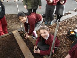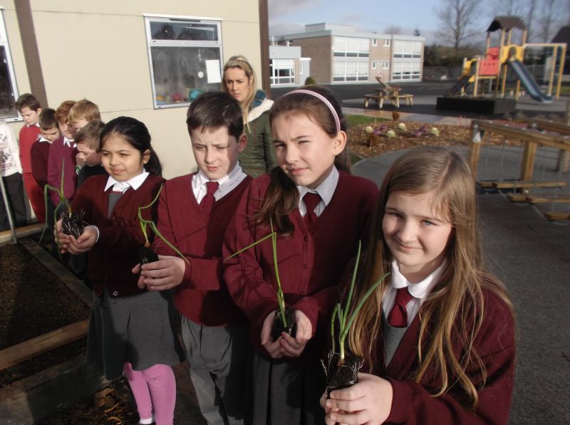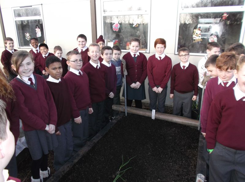 Ms. McInerney’s 4th class planted Shenshu Onions today, January 6th, 2015.. These are Japanese Winter Onions and we hope to harvest them before the summer holidays.