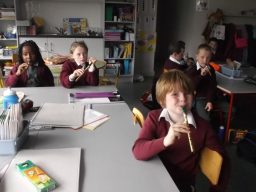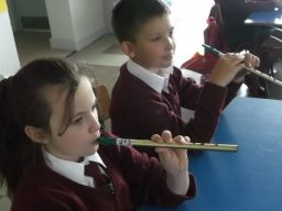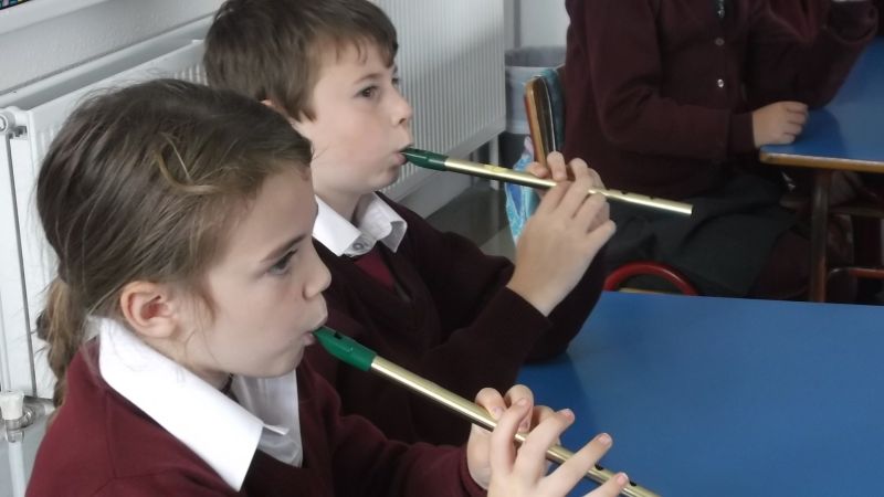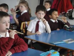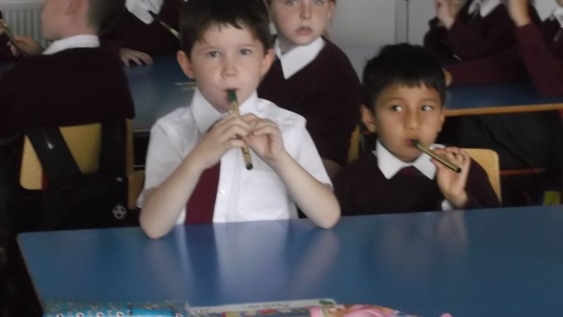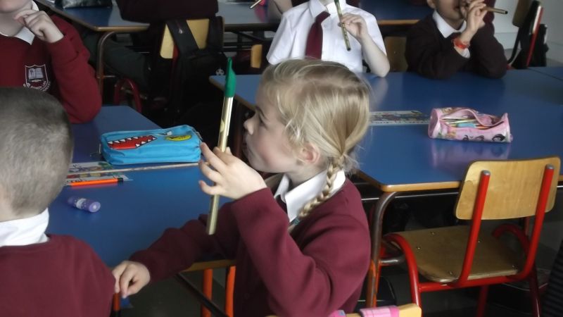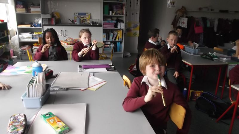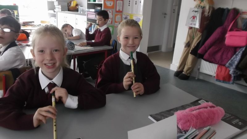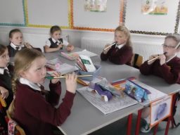 2nd and 3rd classes have commenced tin whistle classes this year in association with Comhaltas. You can see images of their work in this gallery.
