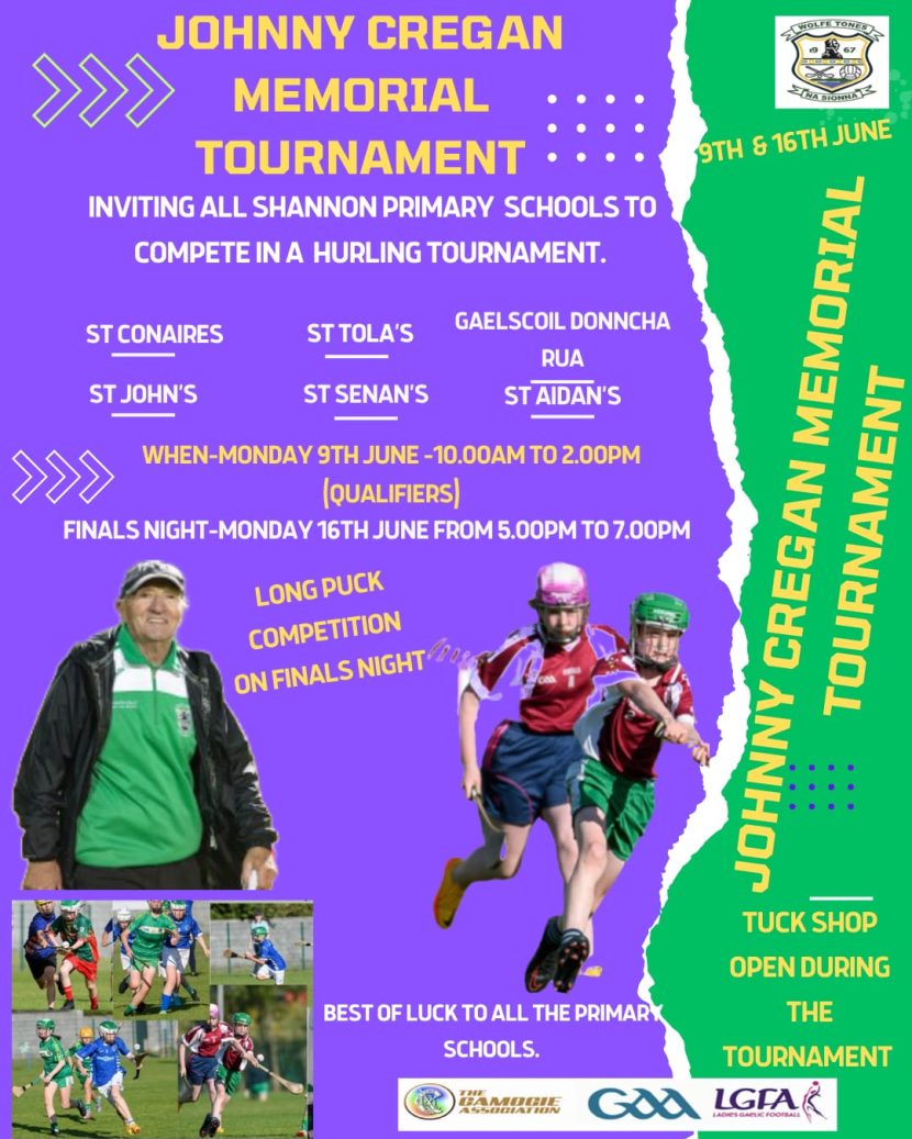 View All EventsBest wishes to all our hurlers and staff involved in the Johnny Cregan Memorial Tournament 2025 which takes place in Wolfe Tones na Sionna today from 10 am to 2 pm.
