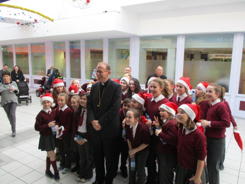 St. Conaire’s School Choir, conducted by Ms. Cleary and accompanied by Ms. McDonagh, Ms. White and Mr. Pilkington, sang at the Mercy on the Mall event in Skycourt today, December 8 2016. The 45 pupils and their teachers provided musical accompaniment to the opening of the Shannon Parish programme of confession, blessings and chat in the town centre. Led by Bishop Fintan Monahan, over twenty priests met shoppers and visitors to Skycourt at various locations around the centre and brought a fresh approach to the traditional start to the preparations for Christmas. The music added to the atmosphere of the event and many thanks to the choir and their teachers for their continued hard work and beautiful music. Click here to see pictures from the day: Mercy on the Mall with St. Conaire’s Choir