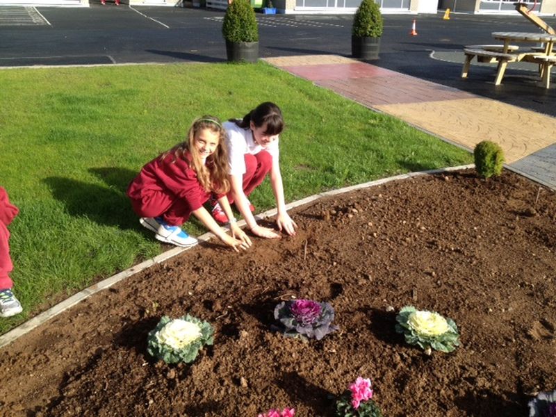 Ms. Cleary’s 5th class got their fingers dirty as they planted some bulbs for Spring 2015.  They also examined the progress of the potatoes we planted earlier this autumn.  This planting is part of our work in providing pupils with a hands-on outdoor classroom.  Check out the Gallery of School Life for lots more photographs.