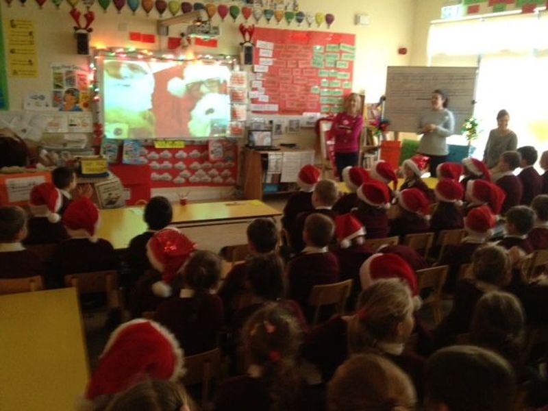 Our 3 Senior Infant Classes were thrilled to be Skyped by Santa & Mrs. Claus all the way from the North Pole. The children from Ms. Kelleher’s, Ms. Malone’s and Ms. Hogan’s Senior Infant won a competition and received a call from Santa on Friday, December 12th,2014. Santa knew all the boys and girls and school staff by name. Labhair sé leis na ranganna as Gaeilge chomh maith. Santa and Mrs. Claus told the children it was very cold at the North Pole and he said he would see them at their prayer service on December 16th. Thank you, Santa, for such a special treat. Click here to see lots more photographs.