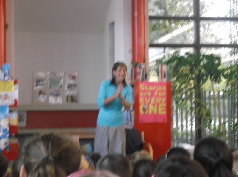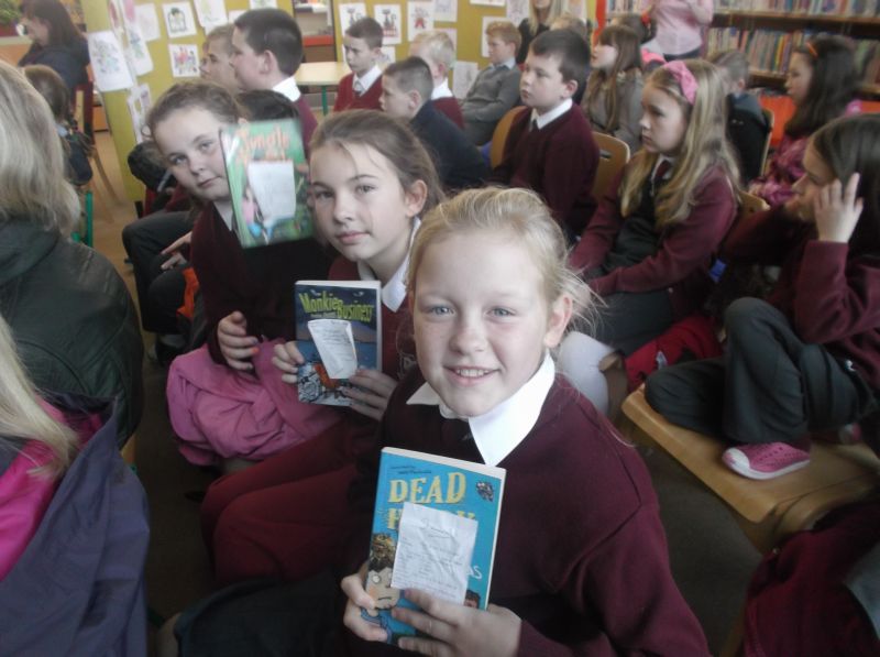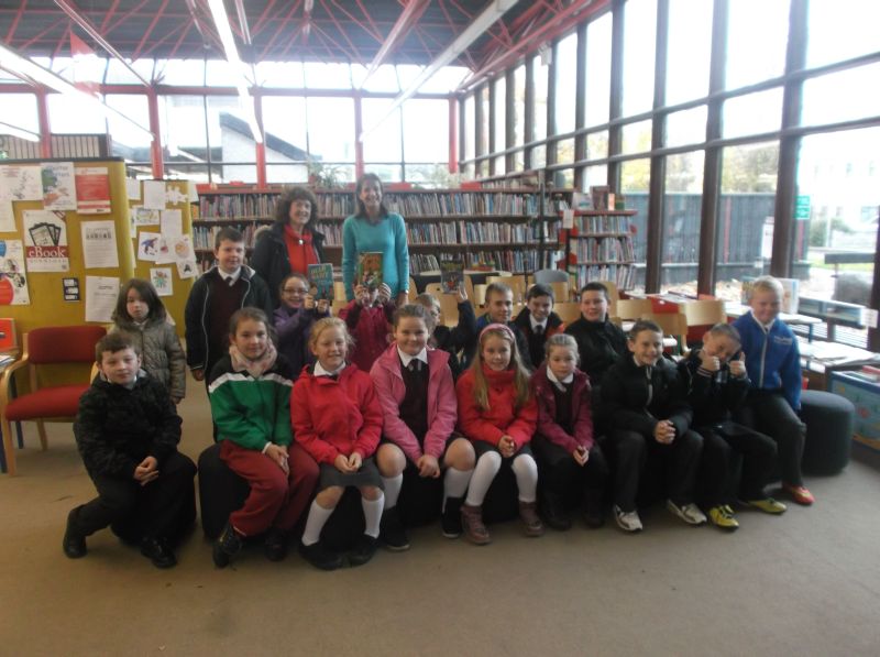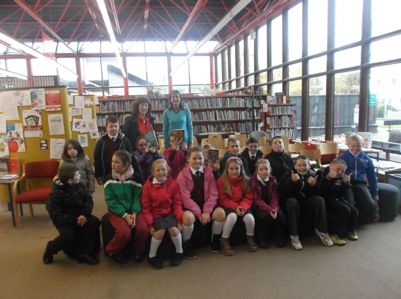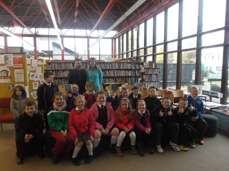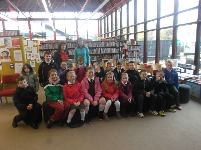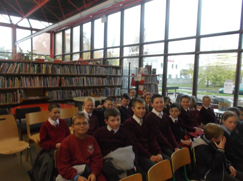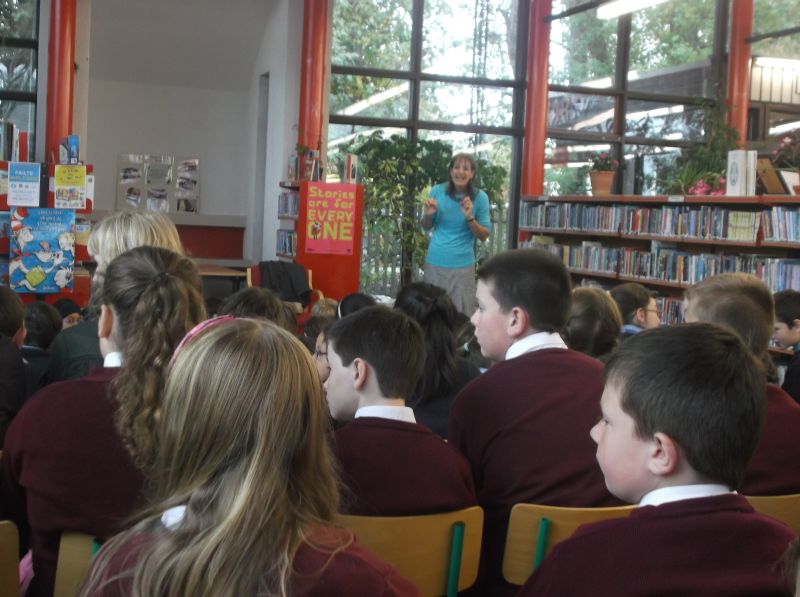 Children’s author Debbie Thomas shared some of her writing tips with pupils from St. Conaire’s on October 20, 2014. Mrs. Manning and Mr. Hickey brought pupils to Seàn Lemasss Library to listen to Debbie.