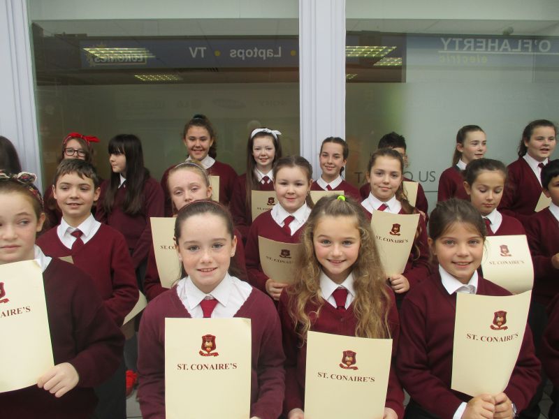 St. Conaire’s School Choir sang in Skycourt on November 15 2016 as part of the production of a Nationwide programme for RTE