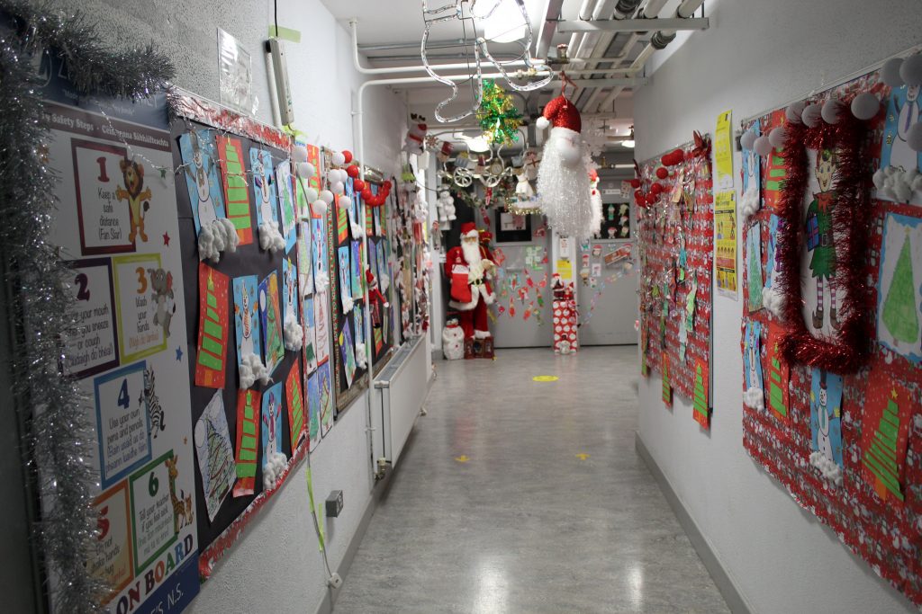 St. Conaire’s is a hive of activity and a riot of colour in the run up to Christmas. Santa’s elves (aka pupils and staff) have been busy decorating corridors, classroom doors and notice-boards during December. Christmas music is broadcast over the PA system in the morning to add to the festive atmosphere. Pupils are also getting a chance to share their talents (from a distance) by posing riddles, telling jokes and playing instruments each day at 11:30 am over by the public address system. Much effort and huge imagination has gone into the different corridors – from Elftown to the Polar Express to Santa coming down the chimney to the Reindeer paddock teachers, SNAs and pupils have gone above and beyond to make Christmas 2020 in school very special while all the time being mindful of Covid-19 protocols. Thank you to one and all for your work and we hope you enjoy the photographs of displays.