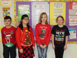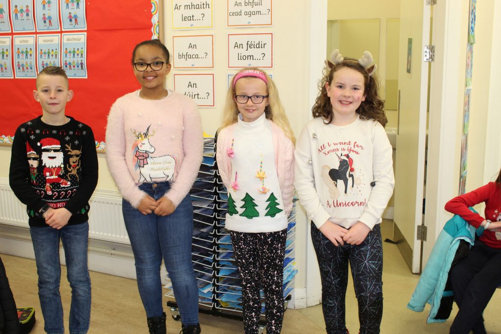 Congratulations to all the pupils and staff of St. Conaire’s NS who dressed up in their finest Christmas jumpers on December 21st and 22nd.  The event was in aid of Carrigoran House Nursing Home and all funds raised went to that worthy local cause.  Well done to everyone.