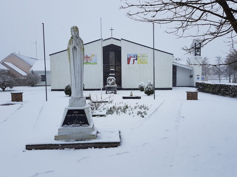 St. Conaire’s was blanketed in snow just like the rest of Ireland on March 2 2018. This remarkable snow storm occurred when very cold air from the east (“The Beast from the East”) met with Storm Emma from the south. The photographs in this gallery were taken on Friday, March 2 2018.