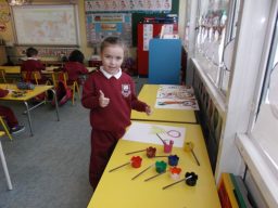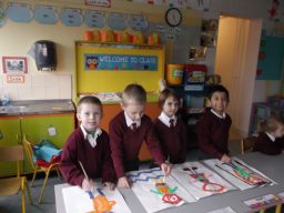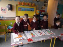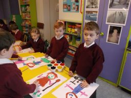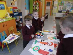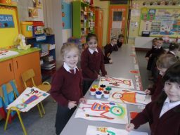 Junior Infants are busy preparing for Catholic Schools Week 2015. This gallery shows them hard at work. Their paintings will be on public display next week.