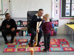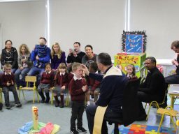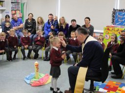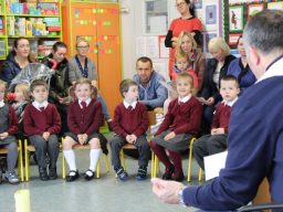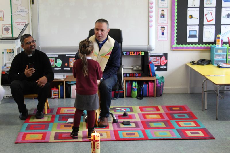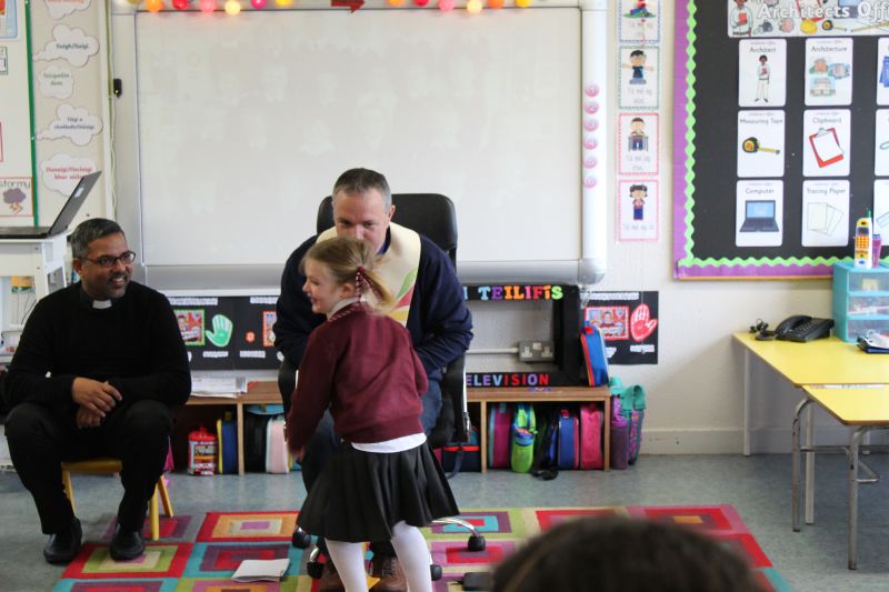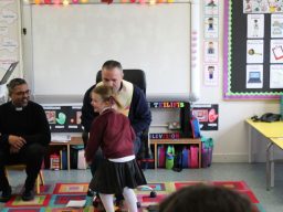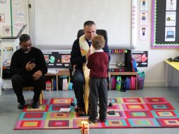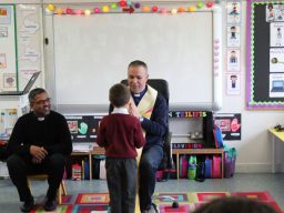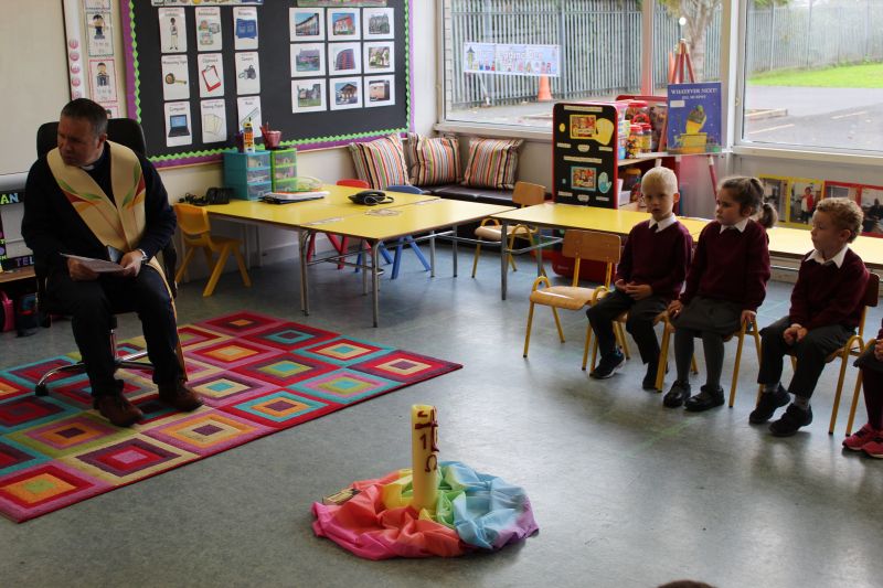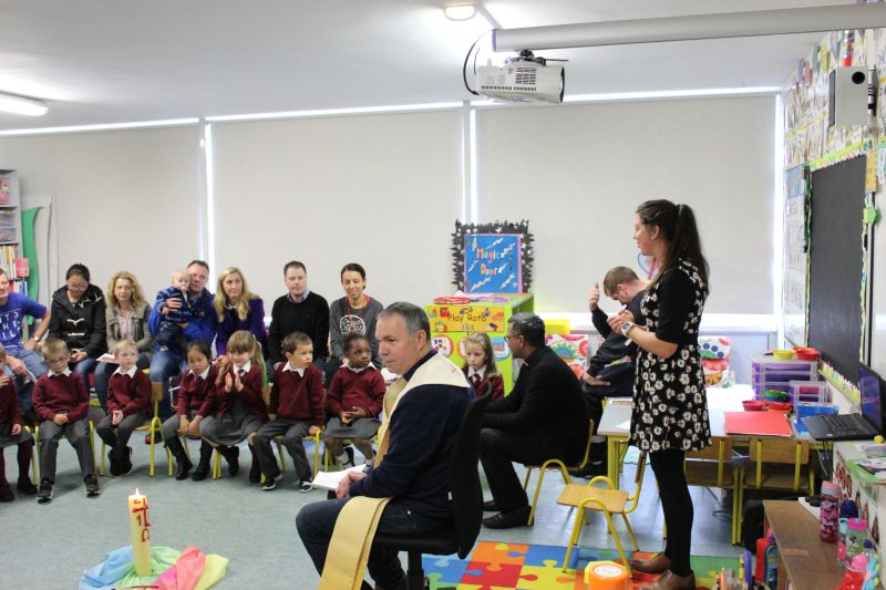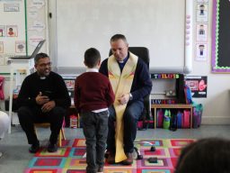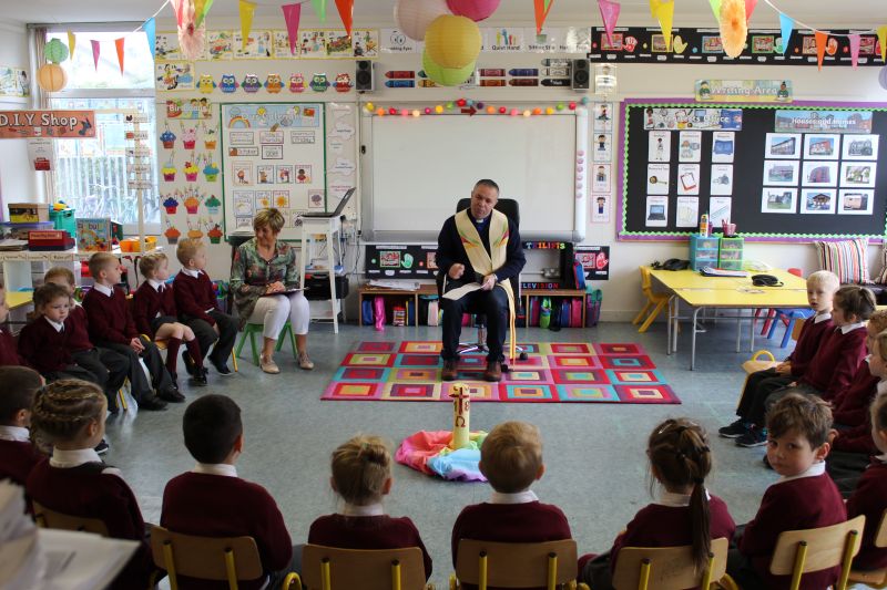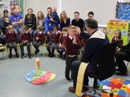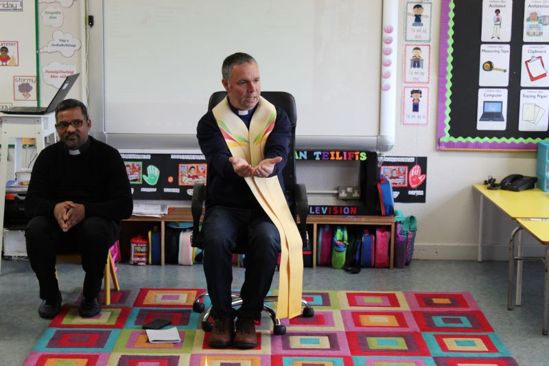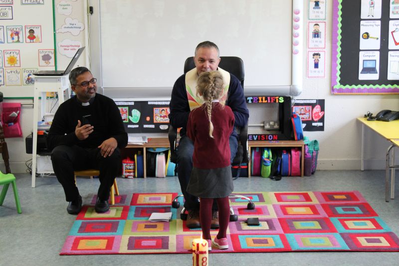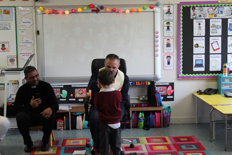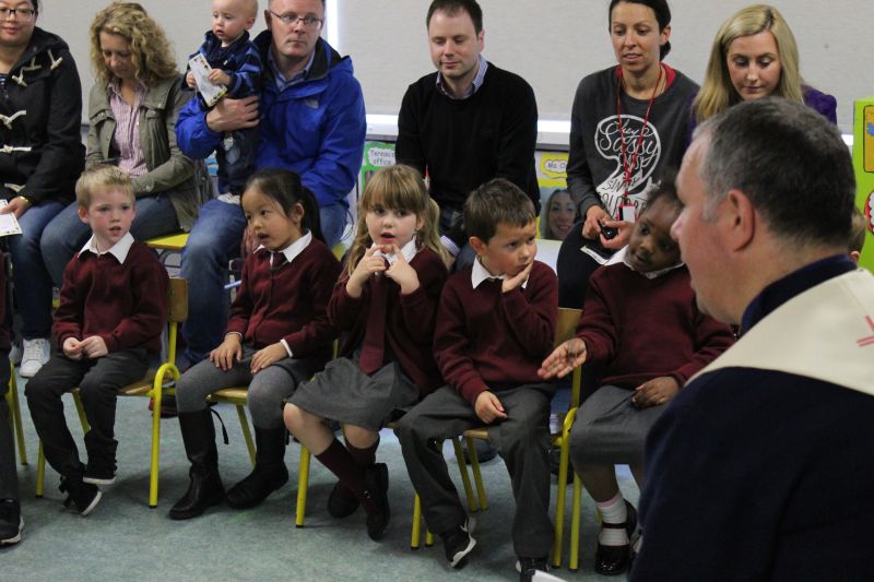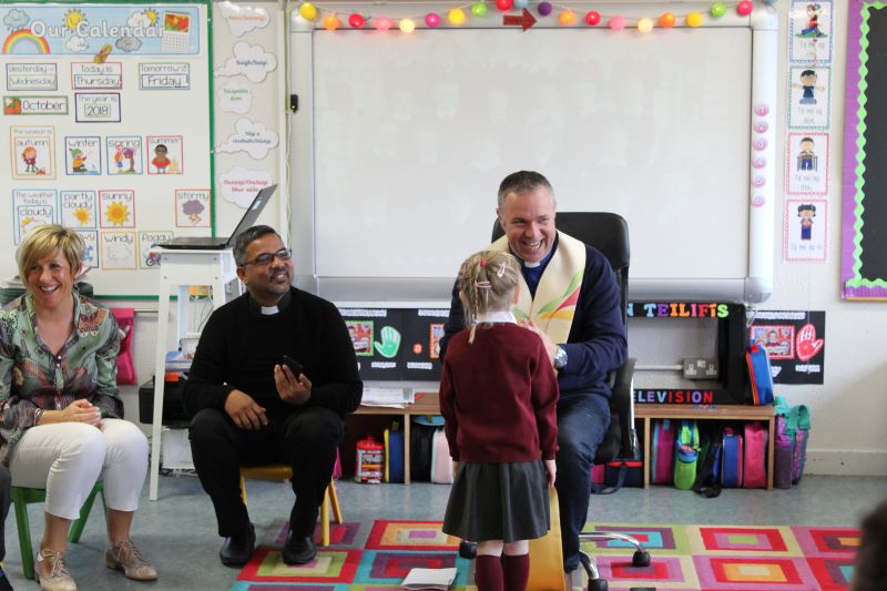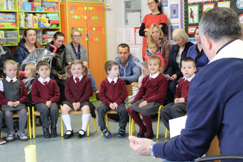 Fr. Arnie and Fr. Francis visited Múinteoir  Maria’s room and Múinteoir Róisín’s room today to bless all our new Junior Infants.  We thank all the parents and grandparents who came to this very special event.