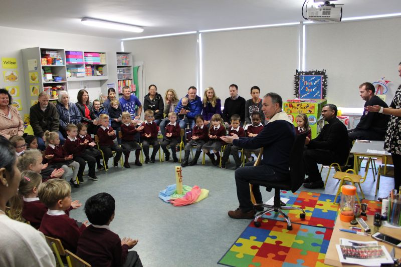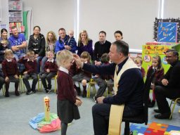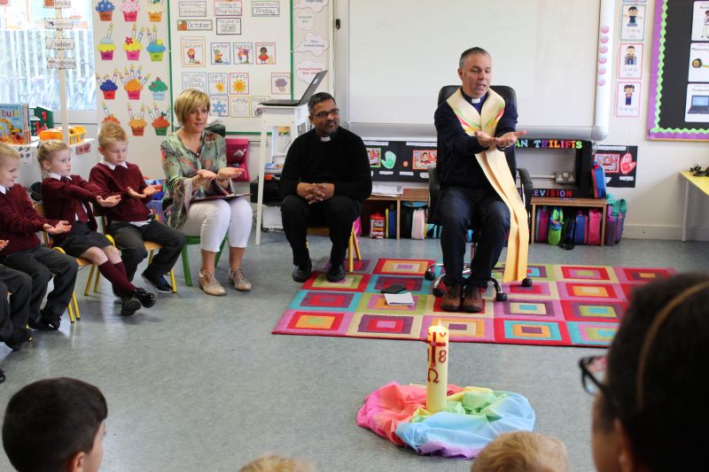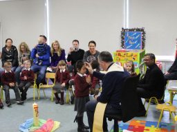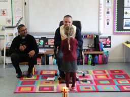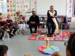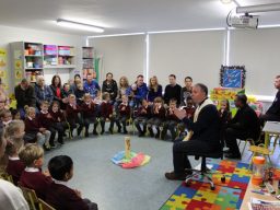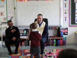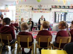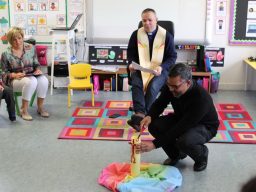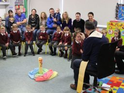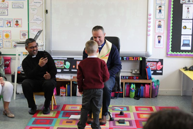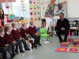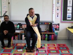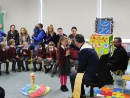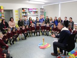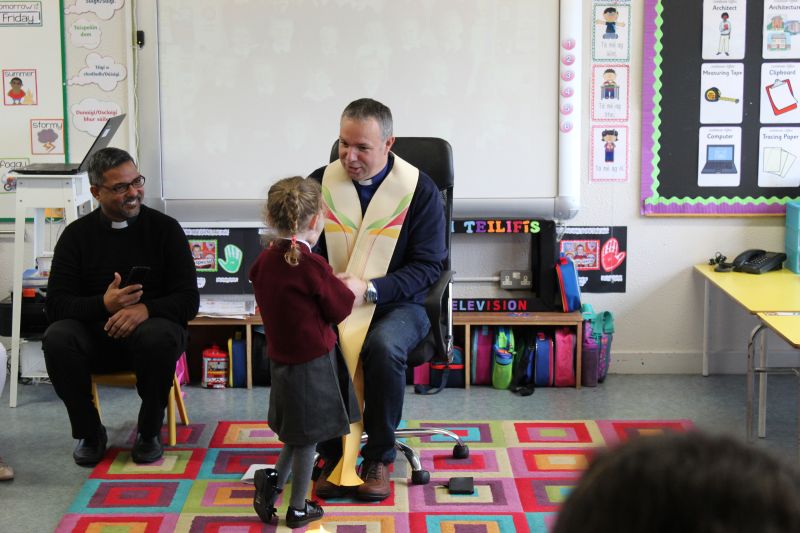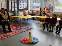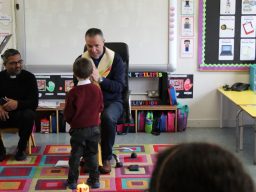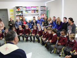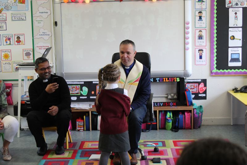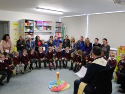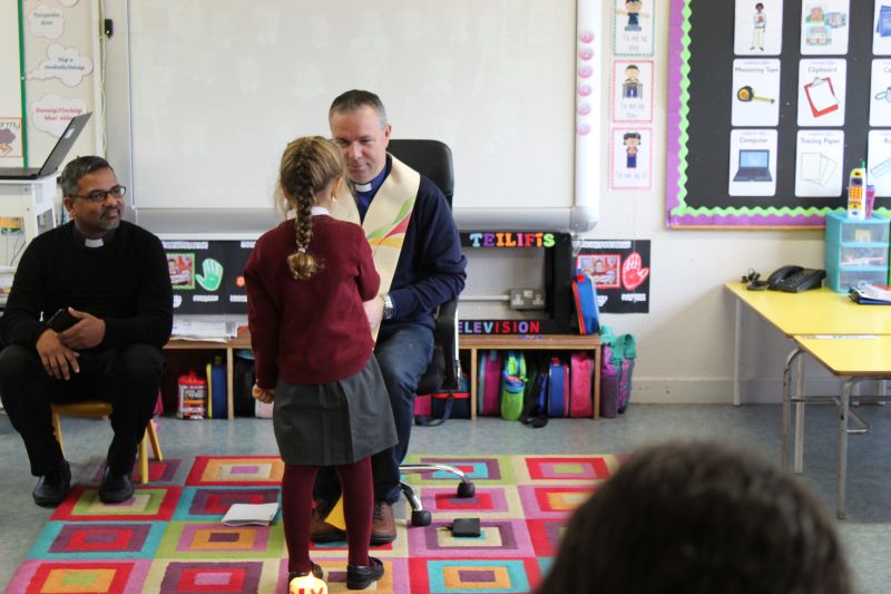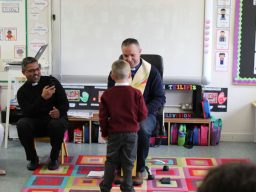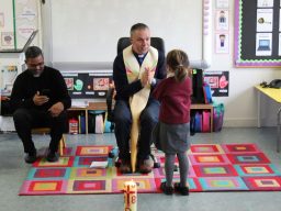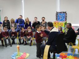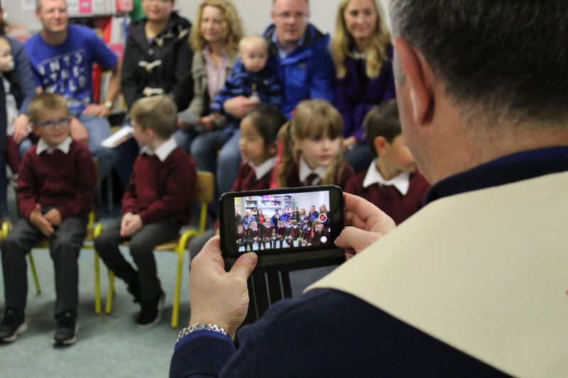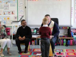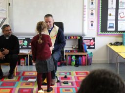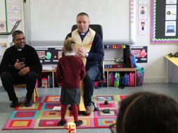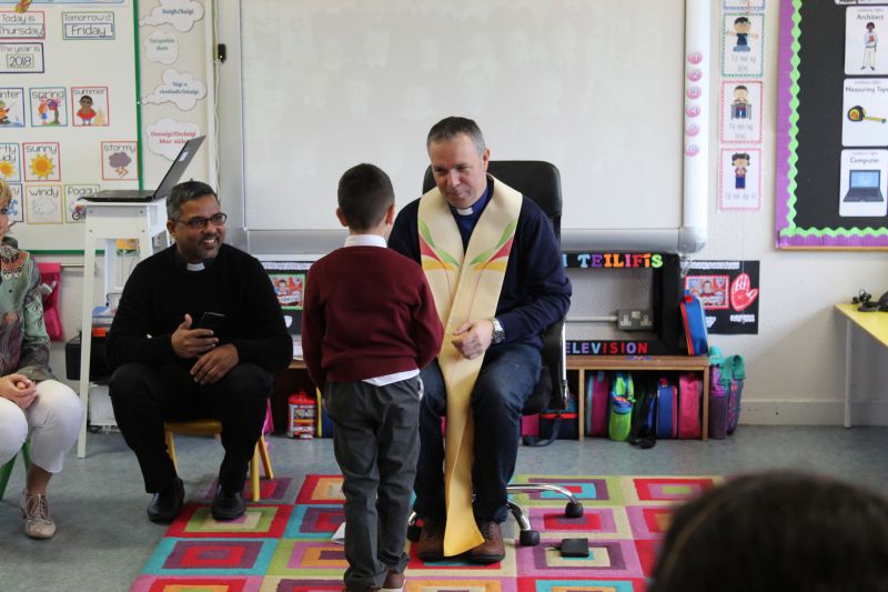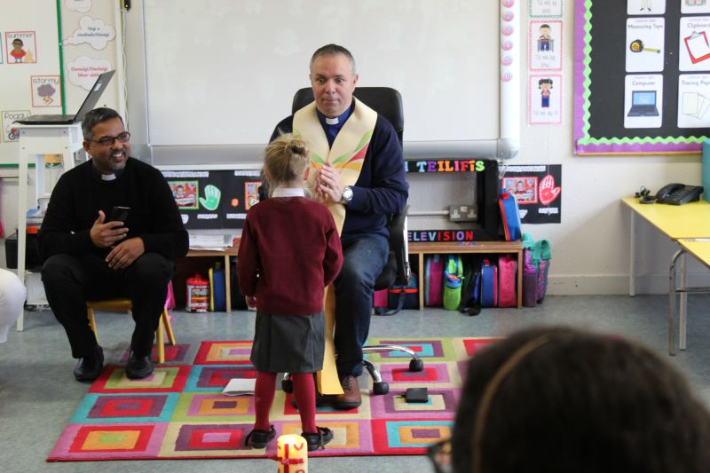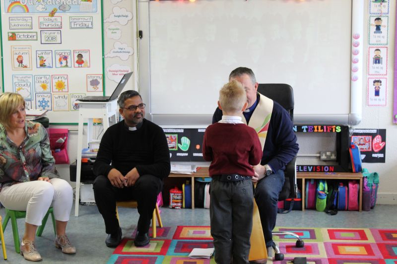Fr. Arnie and Fr. Francis visited Múinteoir  Maria’s room and Múinteoir Róisín’s room today to bless all our new Junior Infants.  We thank all the parents and grandparents who came to this very special event.