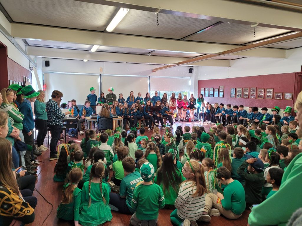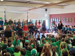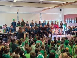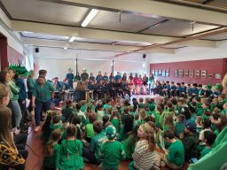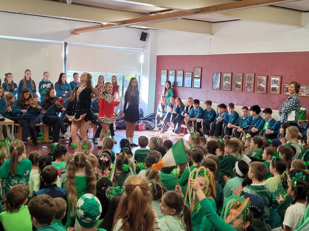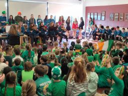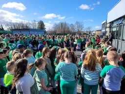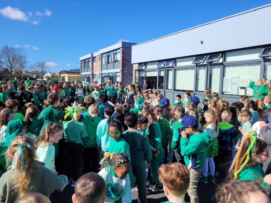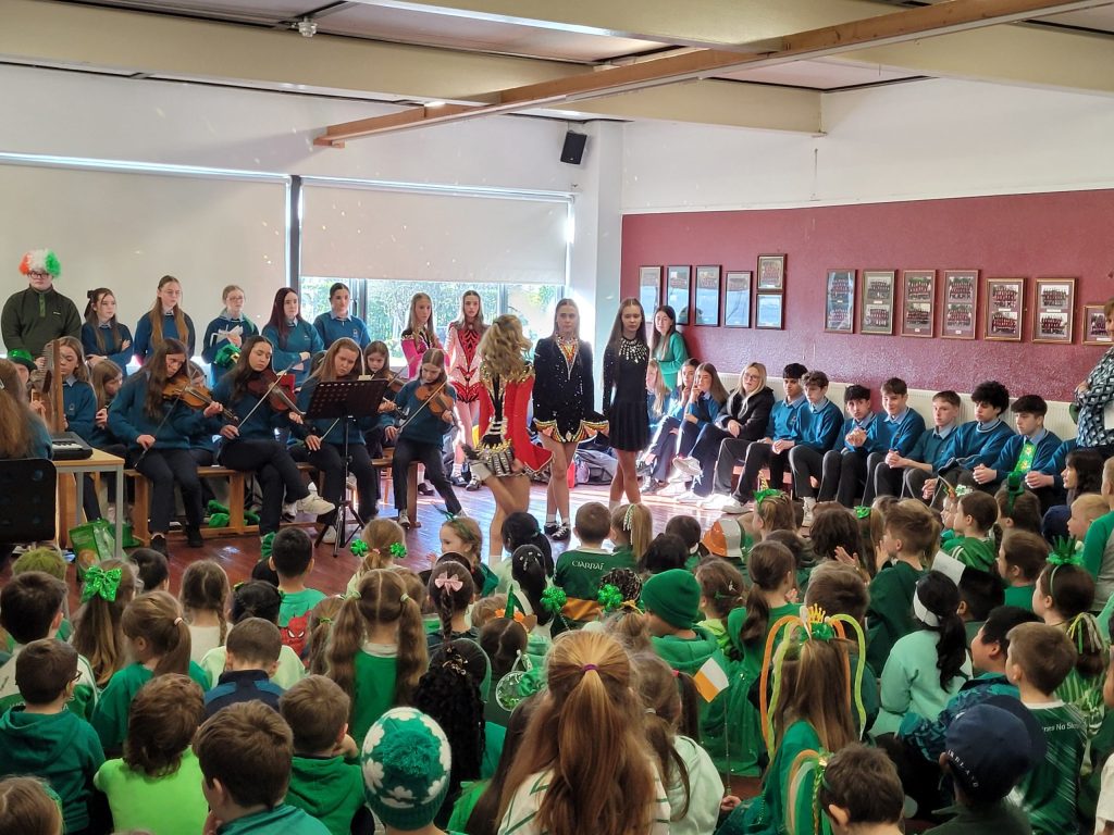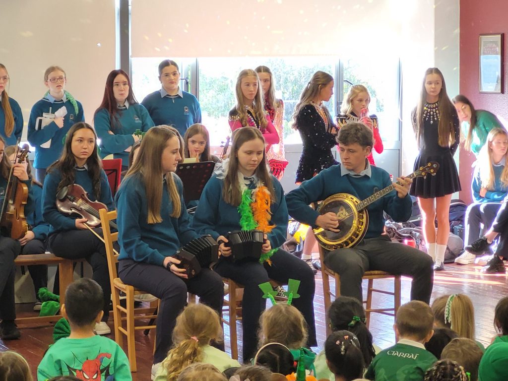 We had a Green Day today. Everyone dressed up in green to celebrate our national music, language and culture. Mrs Glynn organised for music with Pauline, Kate and a special visitor, Muireann. We were delighted to welcome the music group from St. Caimin’s Community School too. We had singers, musicians and dancers from St. Conaire’s as well. After break, there was great dancing on the yard in brilliant March sunshine. Many thanks to all involved in the organisation of what was a great Lá Glas. Maith sibh go léir!