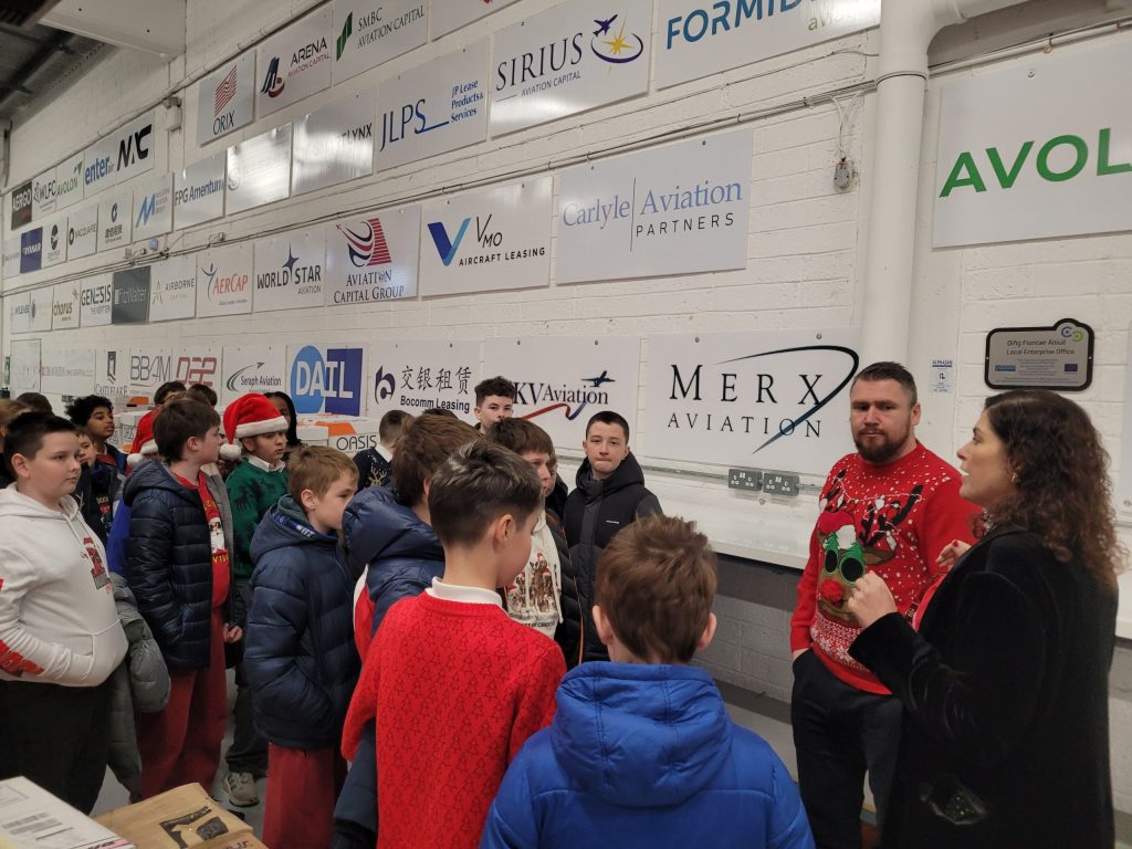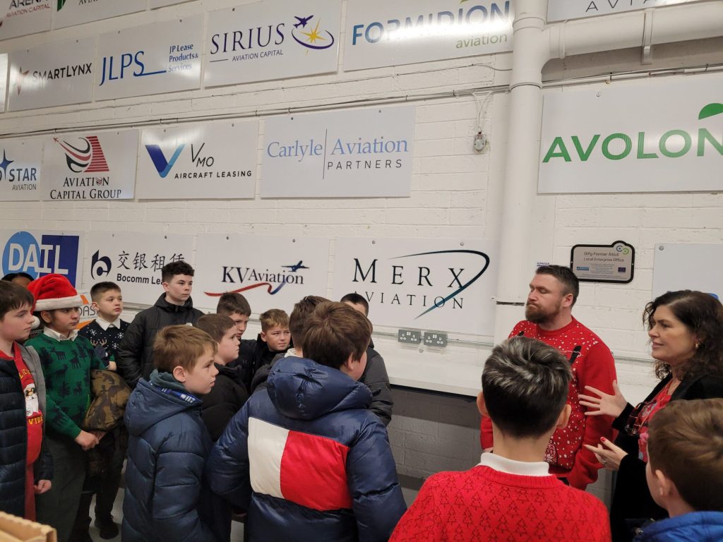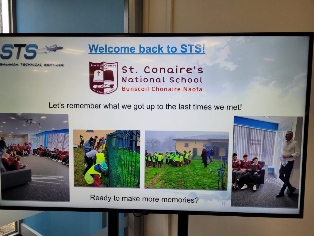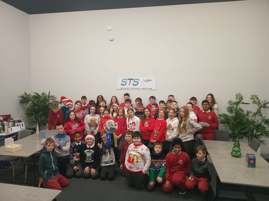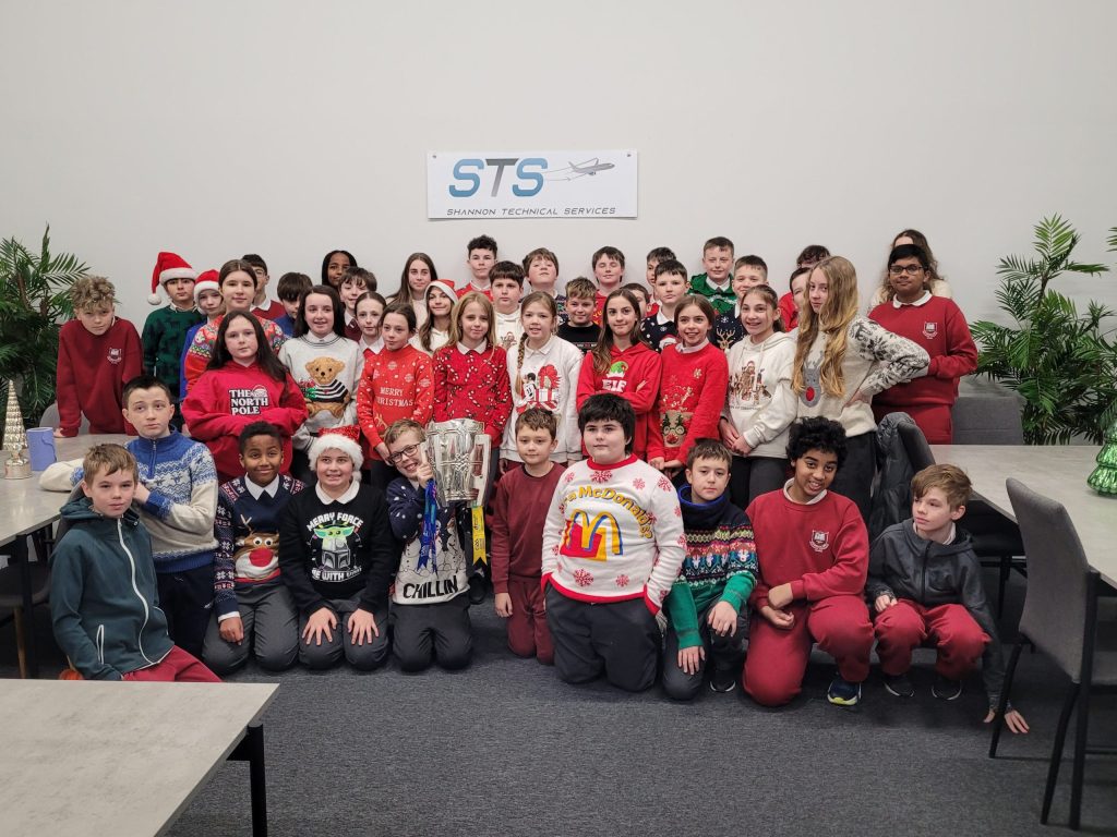 6th class pupils and staff from the school recently visited Shannon Technical Services (STS) for a very special event.  The pupils got a tour of the facility and learned about the important work done by STS.  We met a number of past pupils and parents who explained the work they do.  After the tour, we were treated to a lovely lunch and got photographs taken with the Liam McCarthy Cup as well.  Then it was on to the meeting room where four generous staff members spend over an hour answering questions about their school choices, careers, hobbies and work.  The questions were very interesting as were the answers from the four panellists.  It was a great insight into how hard work and determination can help you get on in life, no matter what you are doing.  To conclude, the pupils were presented with goodie bags by the STS staff.  We are delighted that the link between St. Conaire’s and Shannon Technical Services is going from strength to strength.  We are grateful to Ben and his team at STS for their time, support and encouragment.  Go raibh míle maith agaibh!