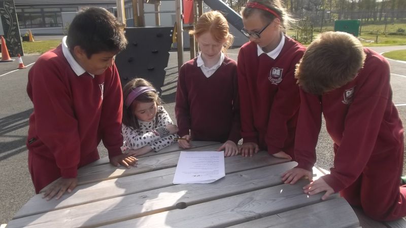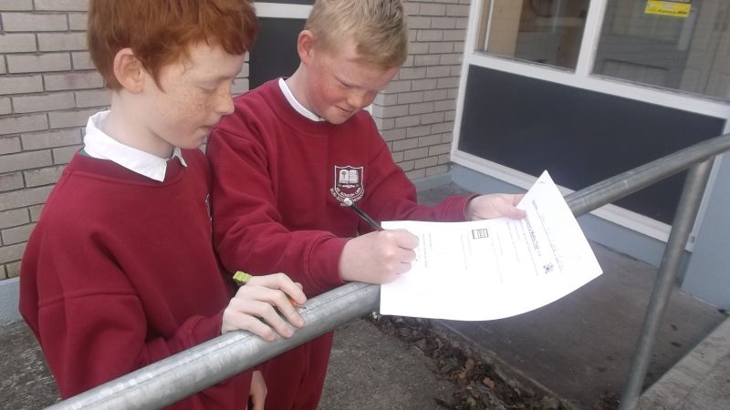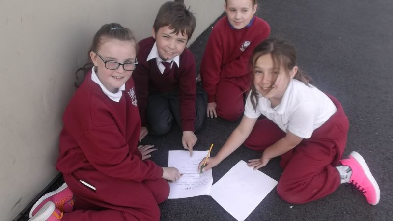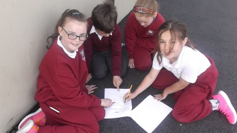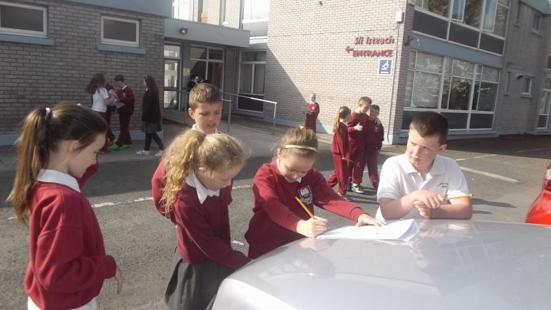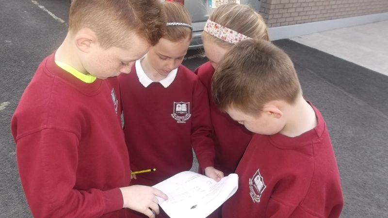 Pupils from 3rd and 4th class followed a Maths Trail in the school on Thursday, April 23 2015. This is part of our Mathematics Programme in St. Conaire’s and we aim to use our school environment as much as possible.