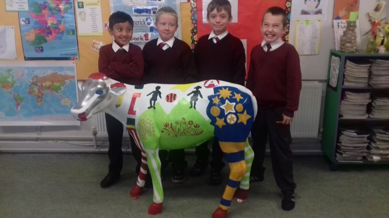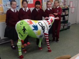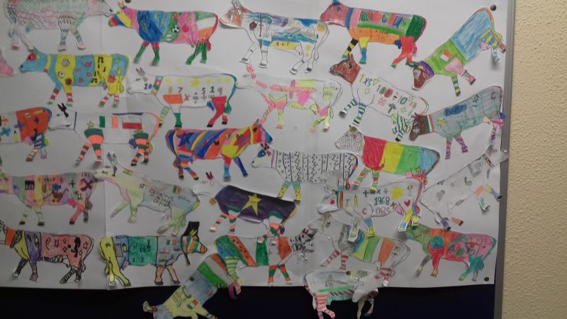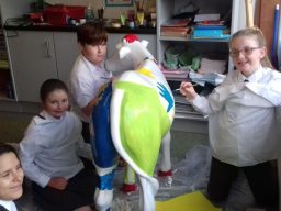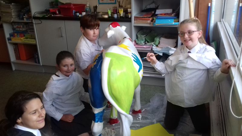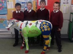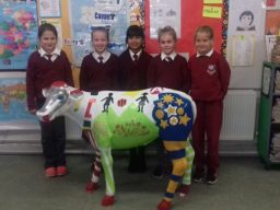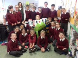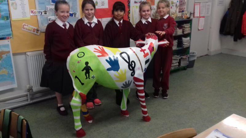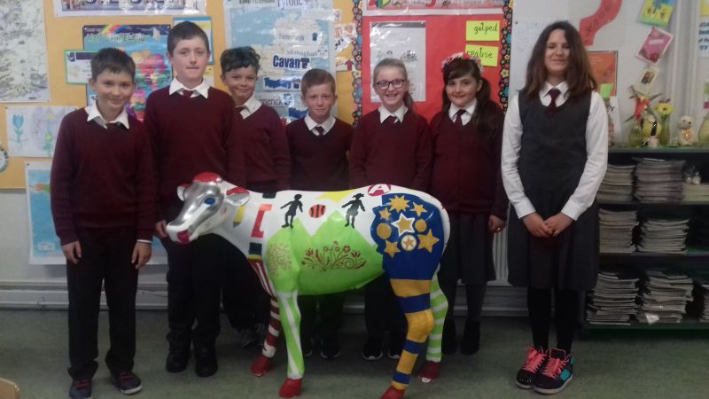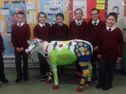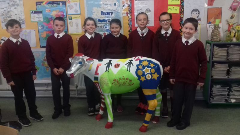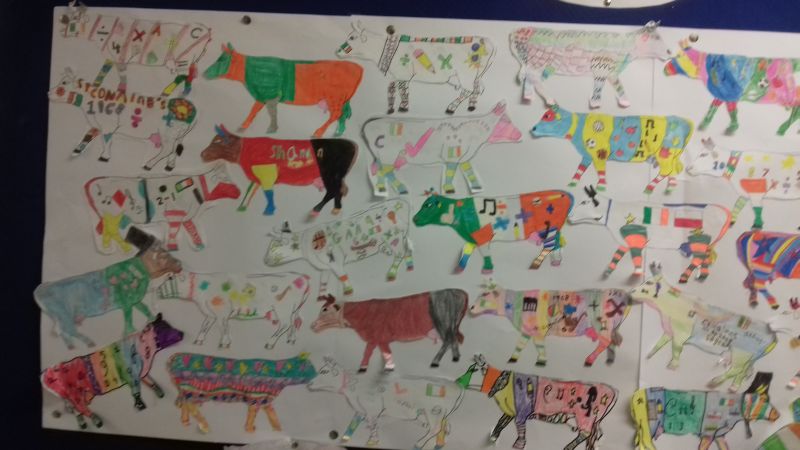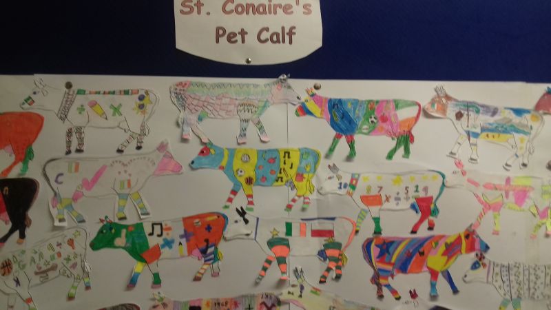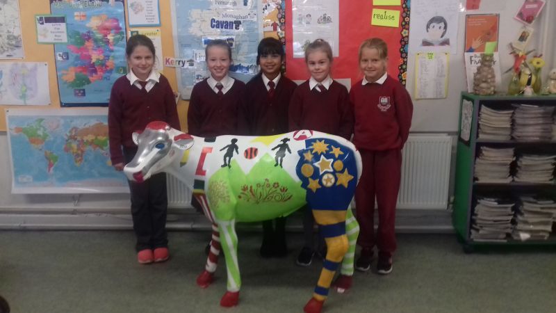 Ms. Greene’s class took part in a community art project in September 2017. The decorated a calf for a display in Skycourt. You can see pictures of the work in progress here. Congratulations to Ms. Greene and all her pupils on a lovely piece of work.