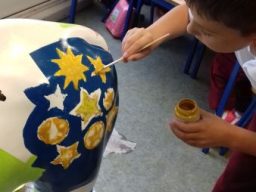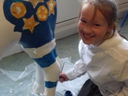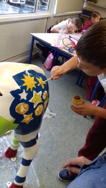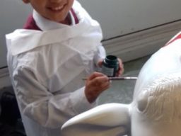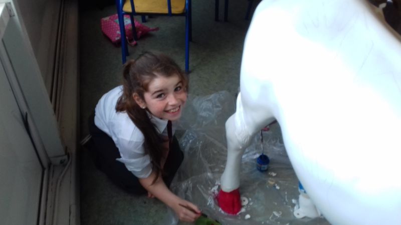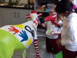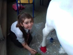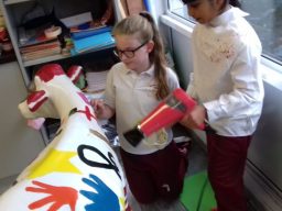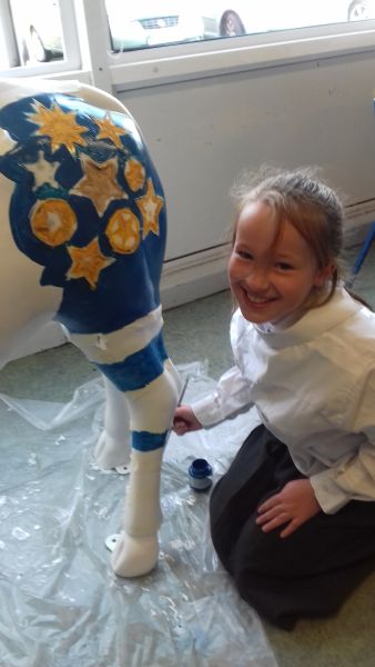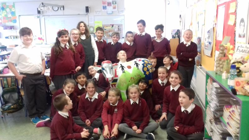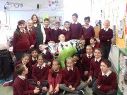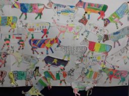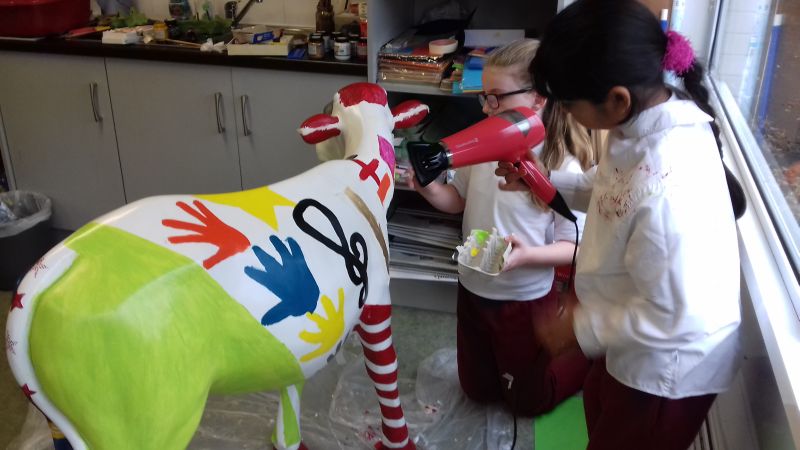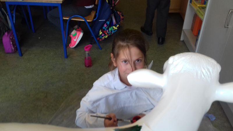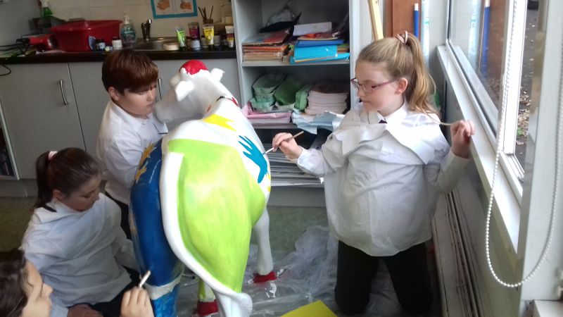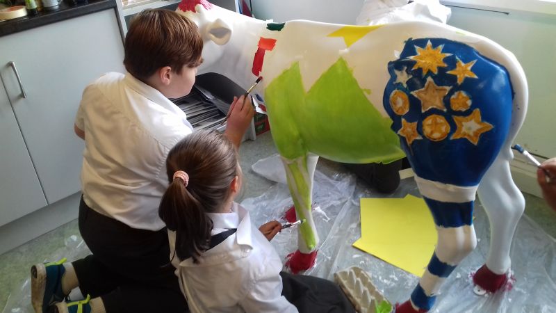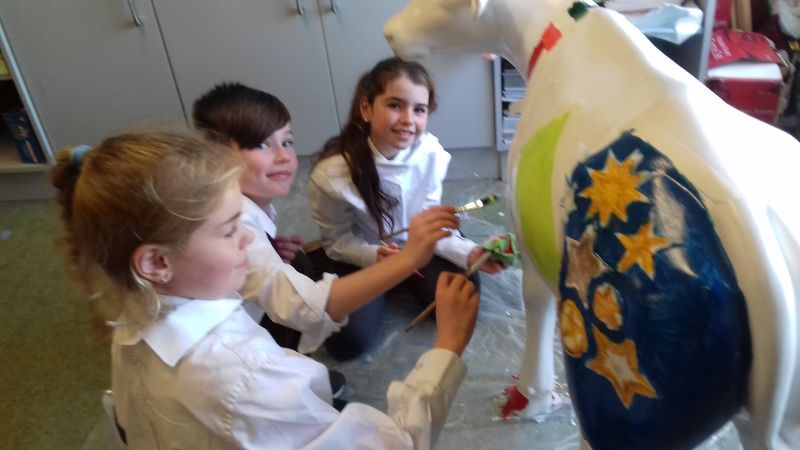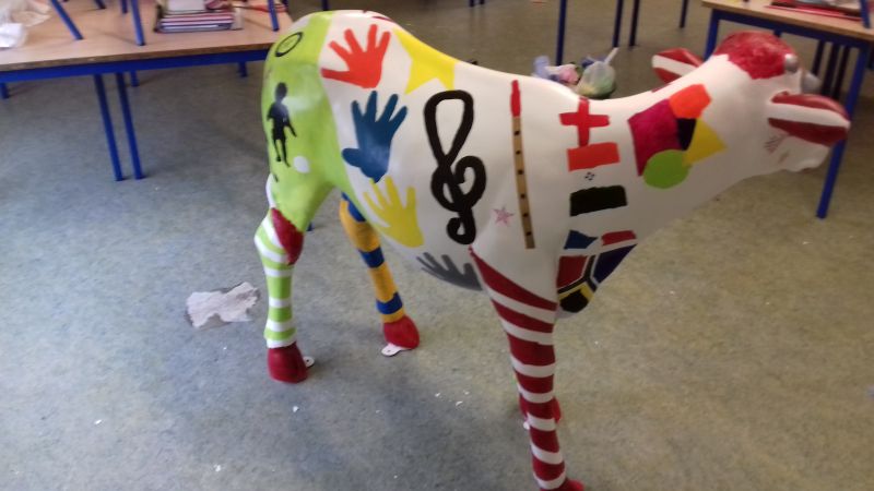 Ms. Greene’s class took part in a community art project in September 2017. The decorated a calf for a display in Skycourt. You can see pictures of the work in progress here. Congratulations to Ms. Greene and all her pupils on a lovely piece of work.