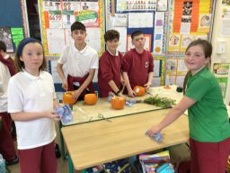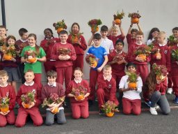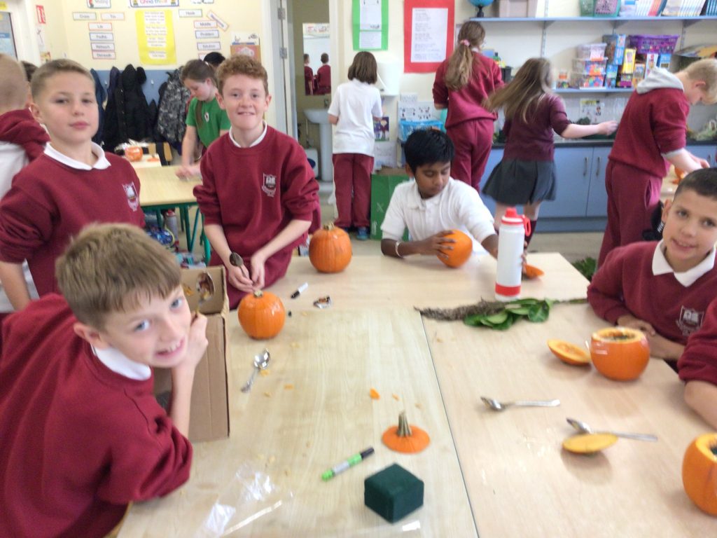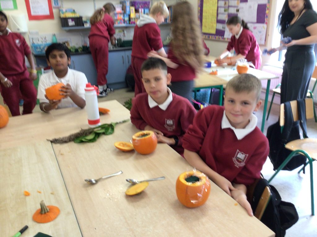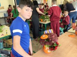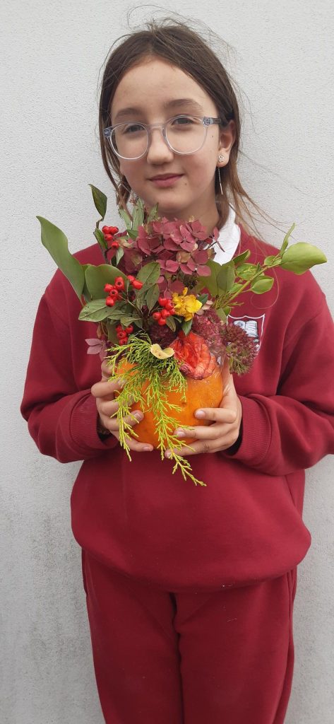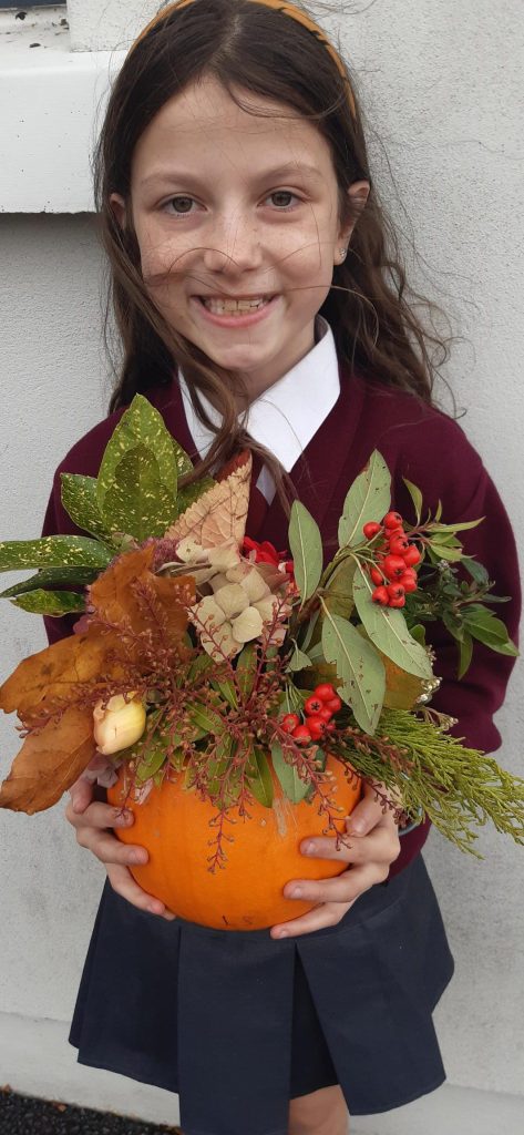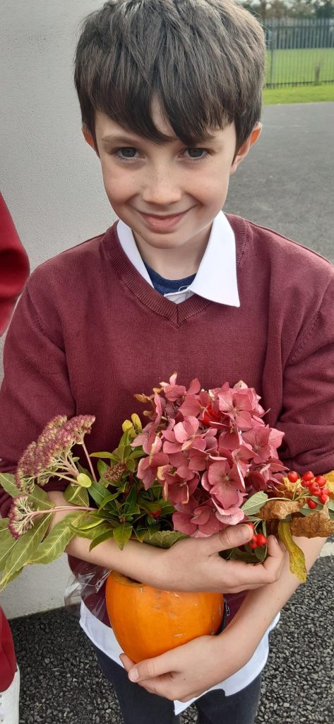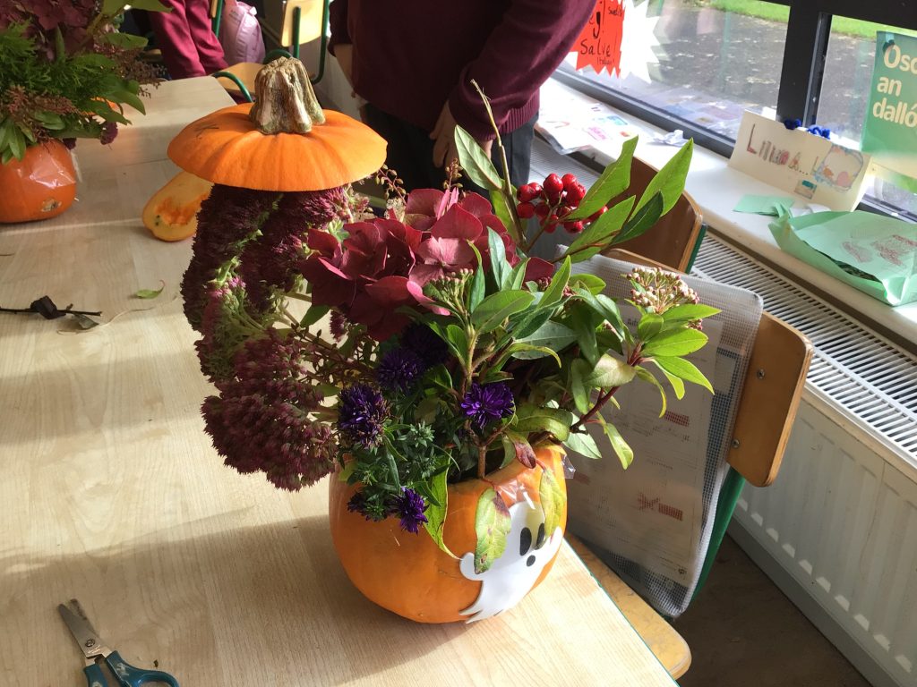 Ms. Greene and Mrs Glynn made fabulous pumpkin vases this week with 5th class.  They used all local materials and came up with brilliant individual vases.  The children worked together and learned all about the valuable skills of communication and collaboration.  Our TY student Liam also helped out.  Well done to everyone involved!  Maith sibh!