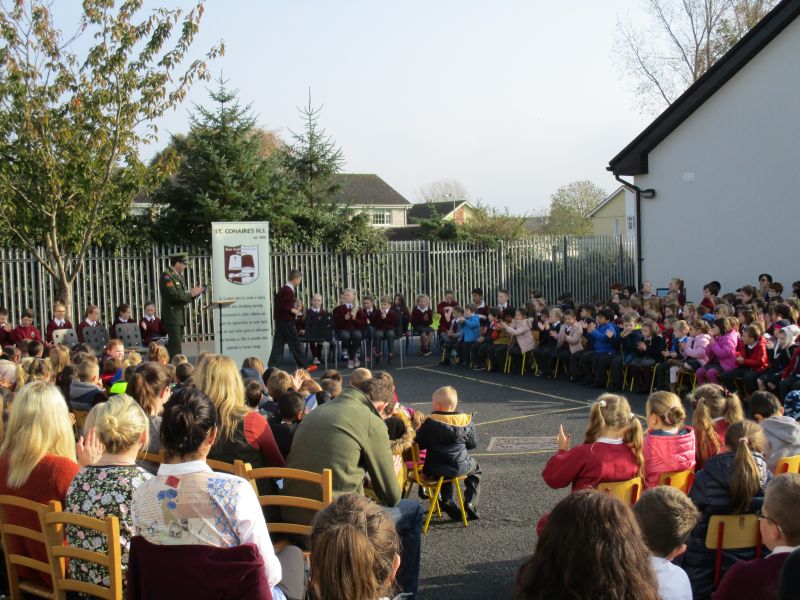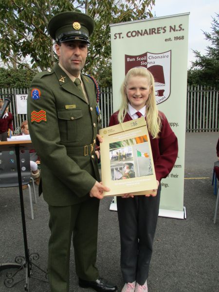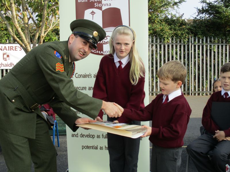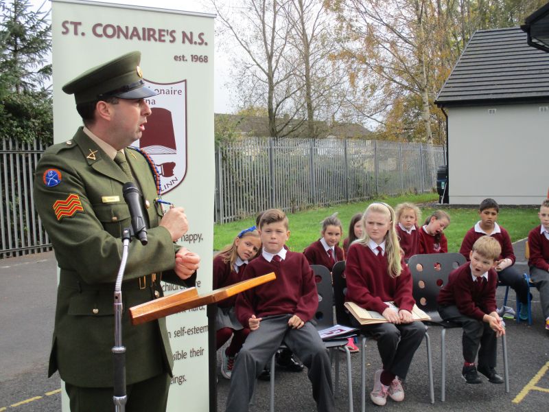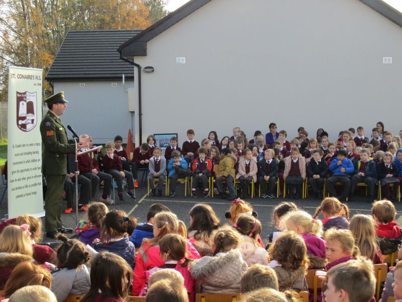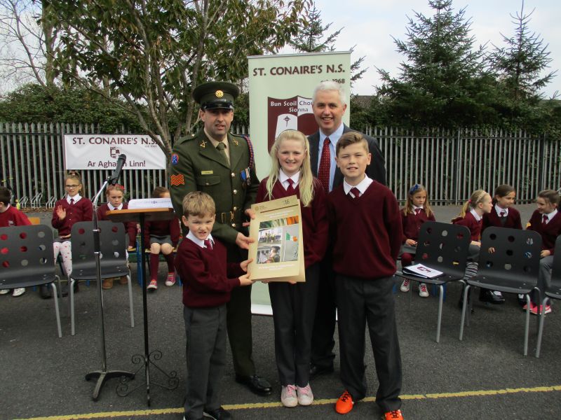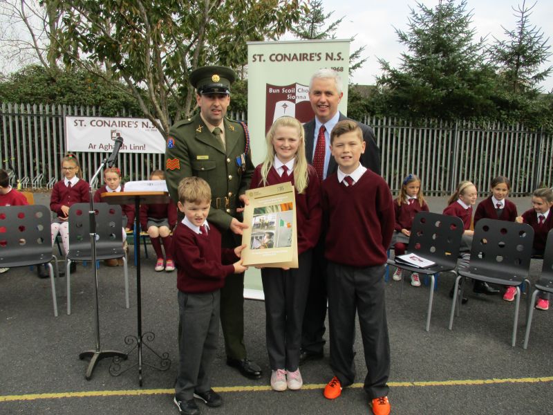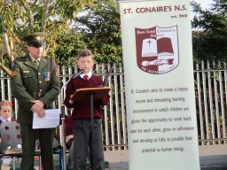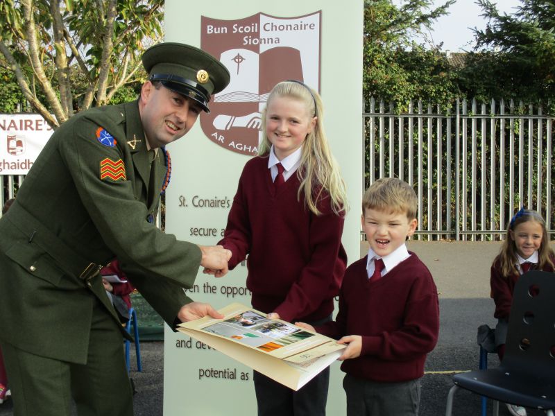 The Defence Forces presented the National Flag to St. Conaire’s on Tuesday, November 3 2015. See photographs from this special occasion in this gallery.
