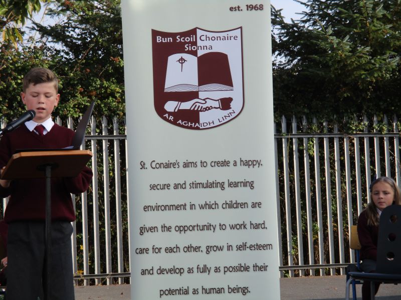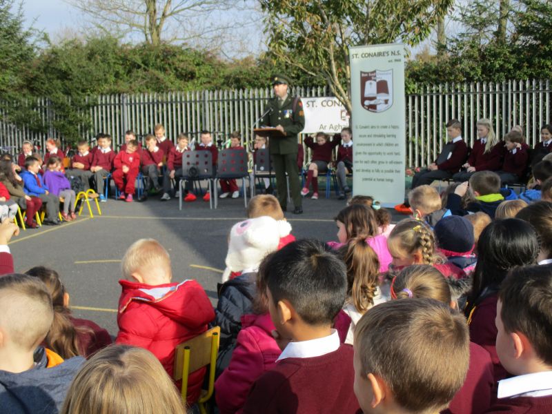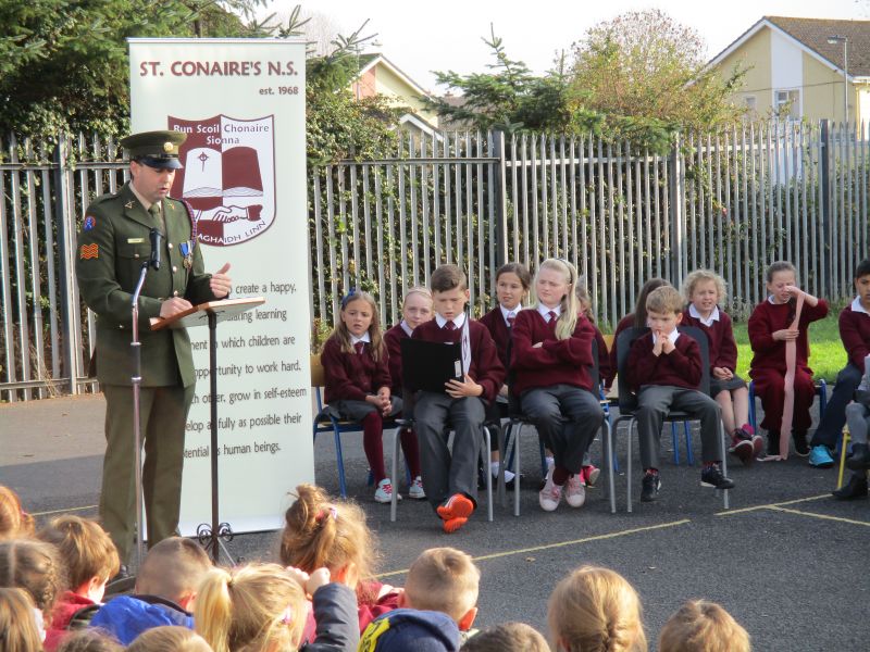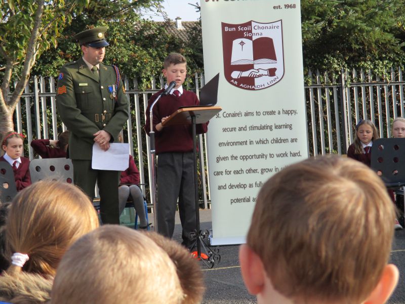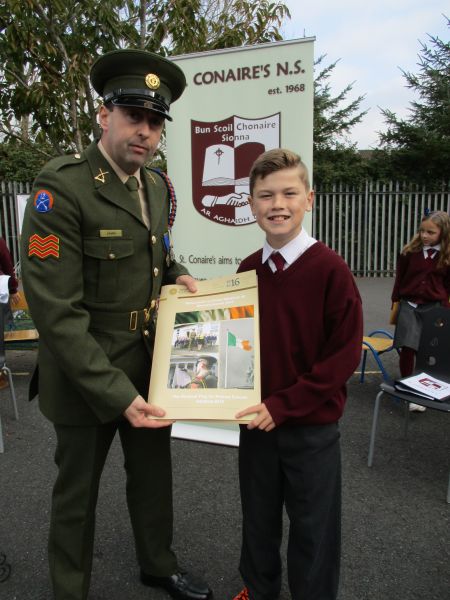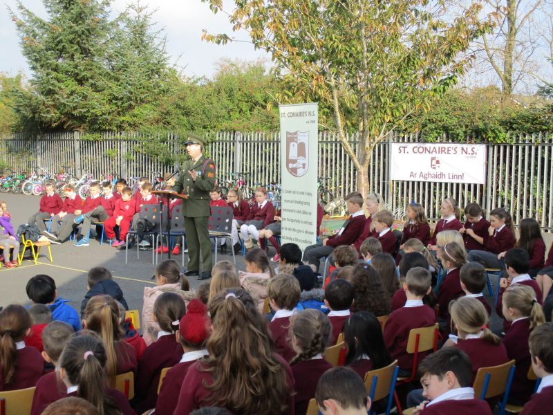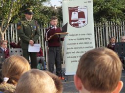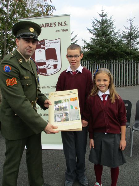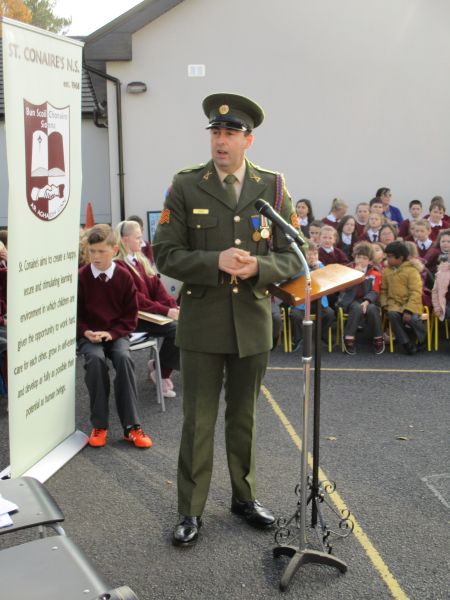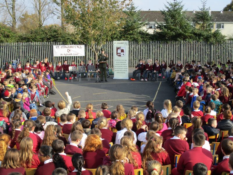 The Defence Forces presented the National Flag to St. Conaire’s on Tuesday, November 3 2015. See photographs from this special occasion in this gallery.