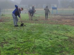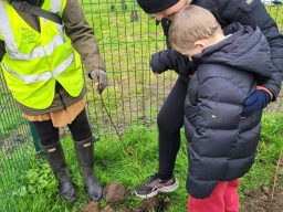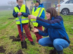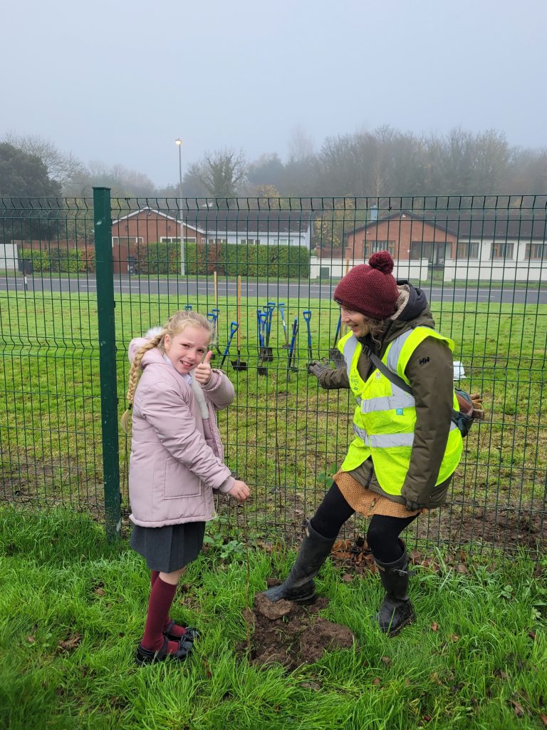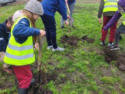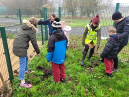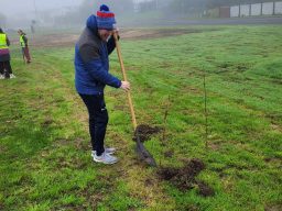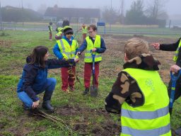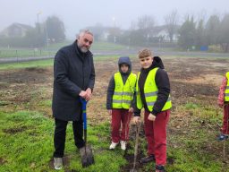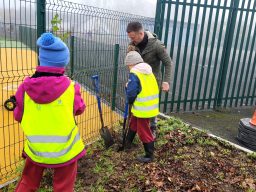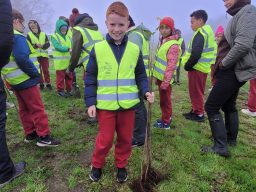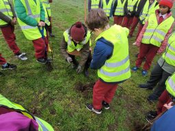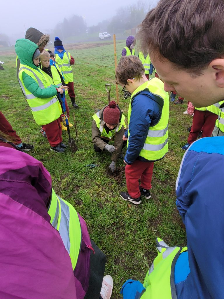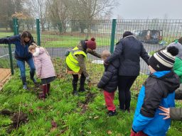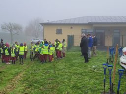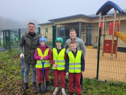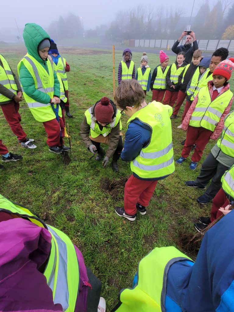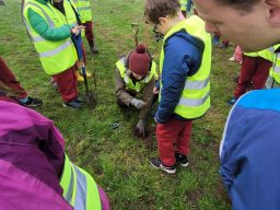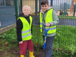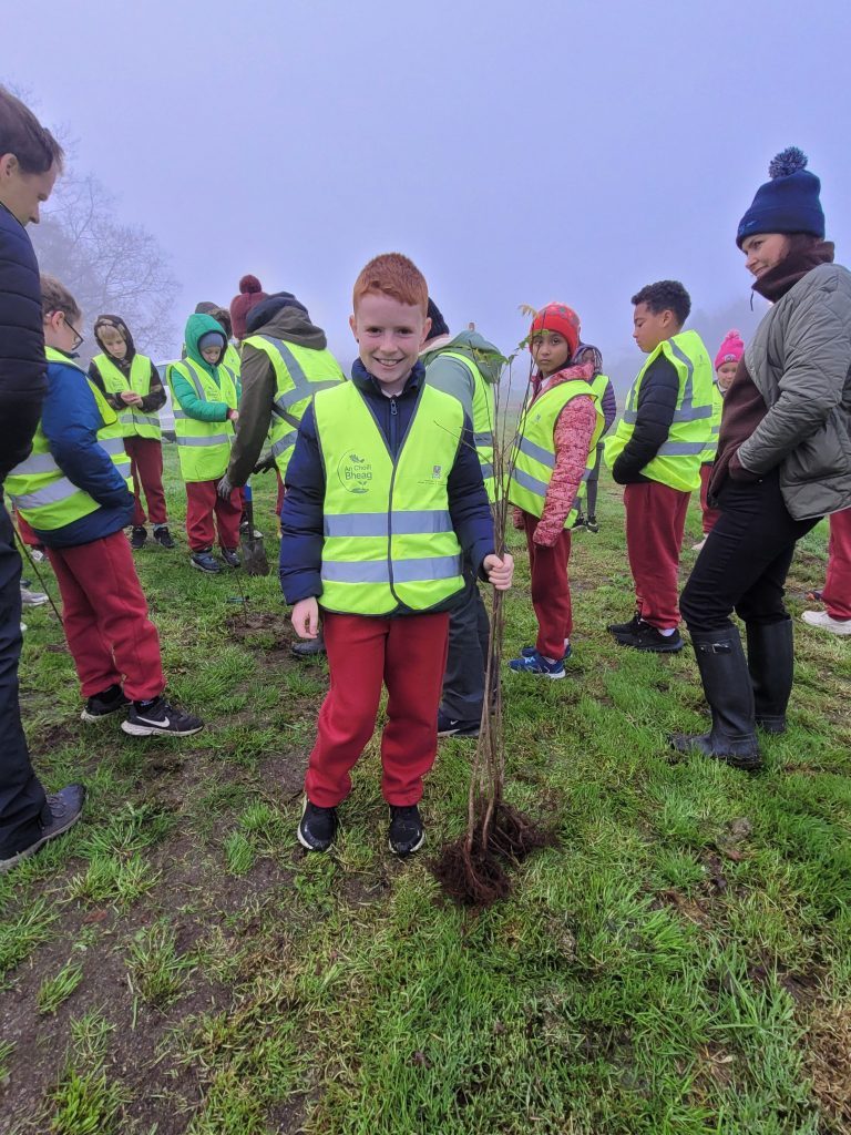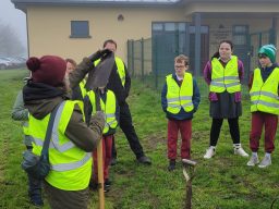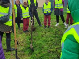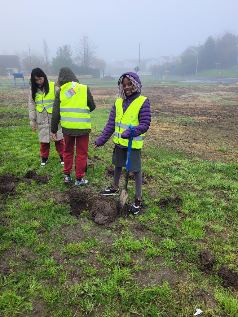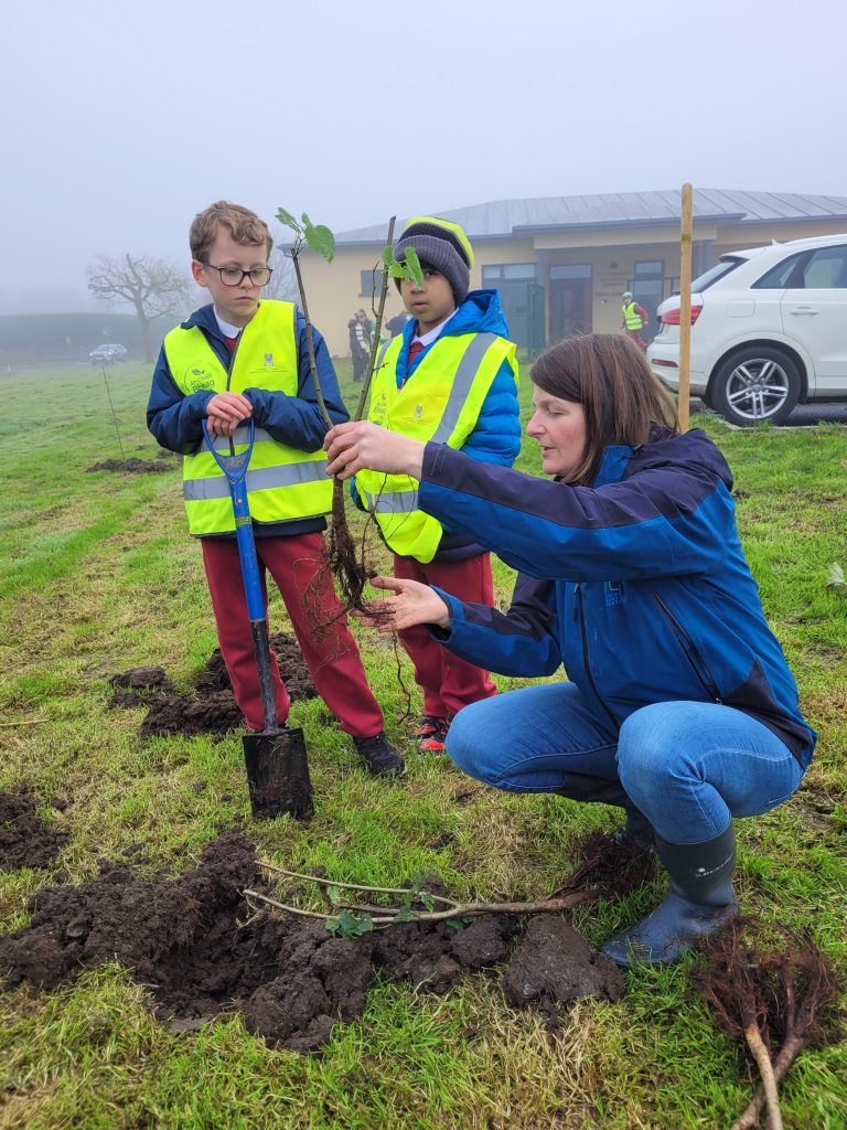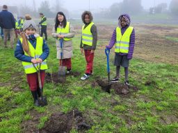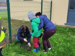 St. Conaire’s was delighted to welcome our friends from Shannon Technical Services (STS) to assist us in planting the native Irish trees for our An Choill Bheag project. The day was cold and foggy but Mr. McNamara’s and Múinteoir Irene/Siobhán class took to the work very well. Guided by Niamh and Rachel from LEAF (Learning About Forests), the children and friends from STS planted over 170 mixed native species on ground near our ASD class. The aim of this project is to create a small native biodiverse woodland area which can be used as an outdoor classroom. The children will be putting in mulch on the next day Niamh and Rachel visit.
