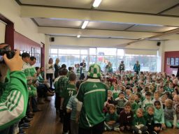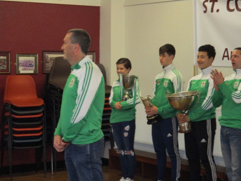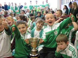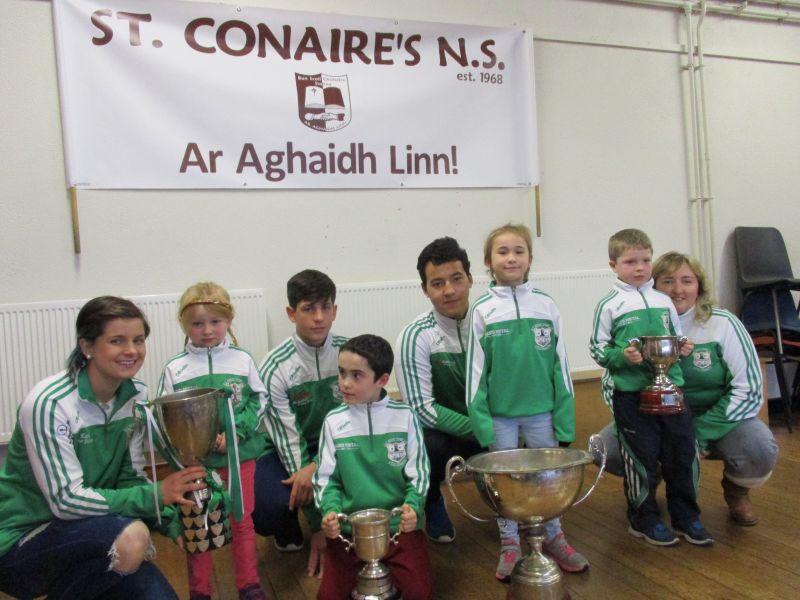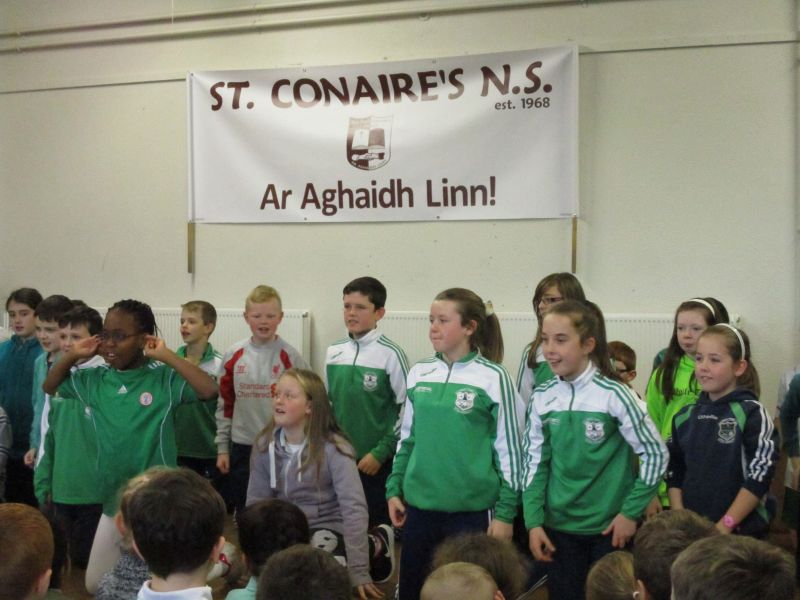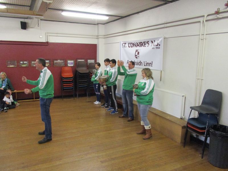 Wolfe Tones na Sionna representatives visited St. Conaire’s with four cups that they won this year. See the pictures here.